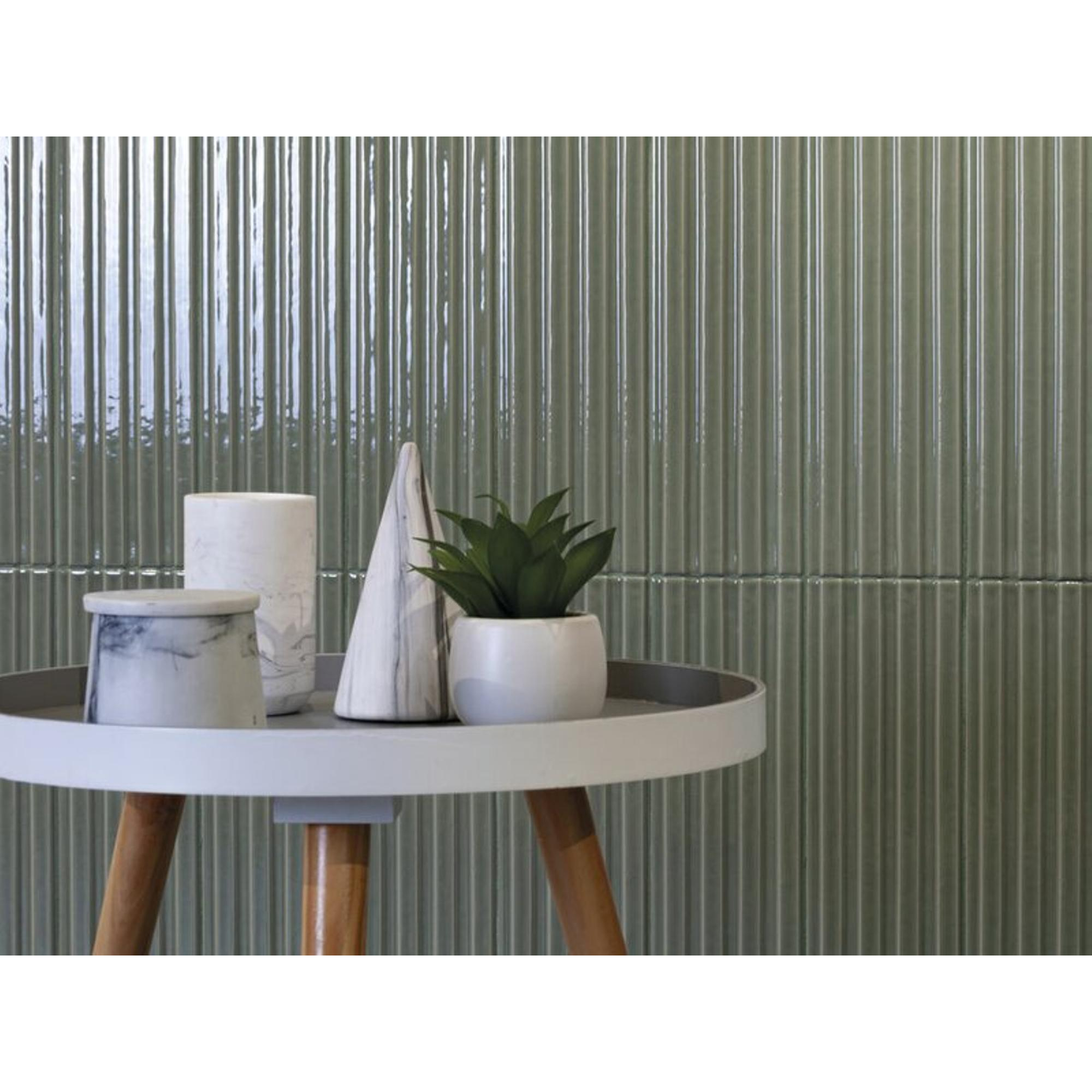 Chique groene tint De groene kleur van deze keramische wandtegel geeft jouw badkamer een chique en luxueuze uitstraling. Groen staat symbool voor rust en natuur, waardoor jouw badkamer een oase van ontspanning wordt. De subtiele glans en het unieke formaat van 10x30.5cm zorgen ervoor dat deze tegel een echte blikvanger is in de ruimte. Laat je badkamer stralen met deze prachtige groene tegel!