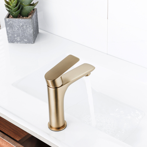 De Adema Sparkle 2.0 wastafelmengkraan straalt een tijdloze elegantie uit die elke badkamer transformeert tot een oase van rust en schoonheid. Met zijn slanke vormgeving en gouden matte kleur is deze mengkraan een symbool van klasse en verfijning. Het tijdloze ontwerp past perfect bij zowel moderne als klassieke interieurs, en voegt een vleugje elegantie toe aan elke ruimte.