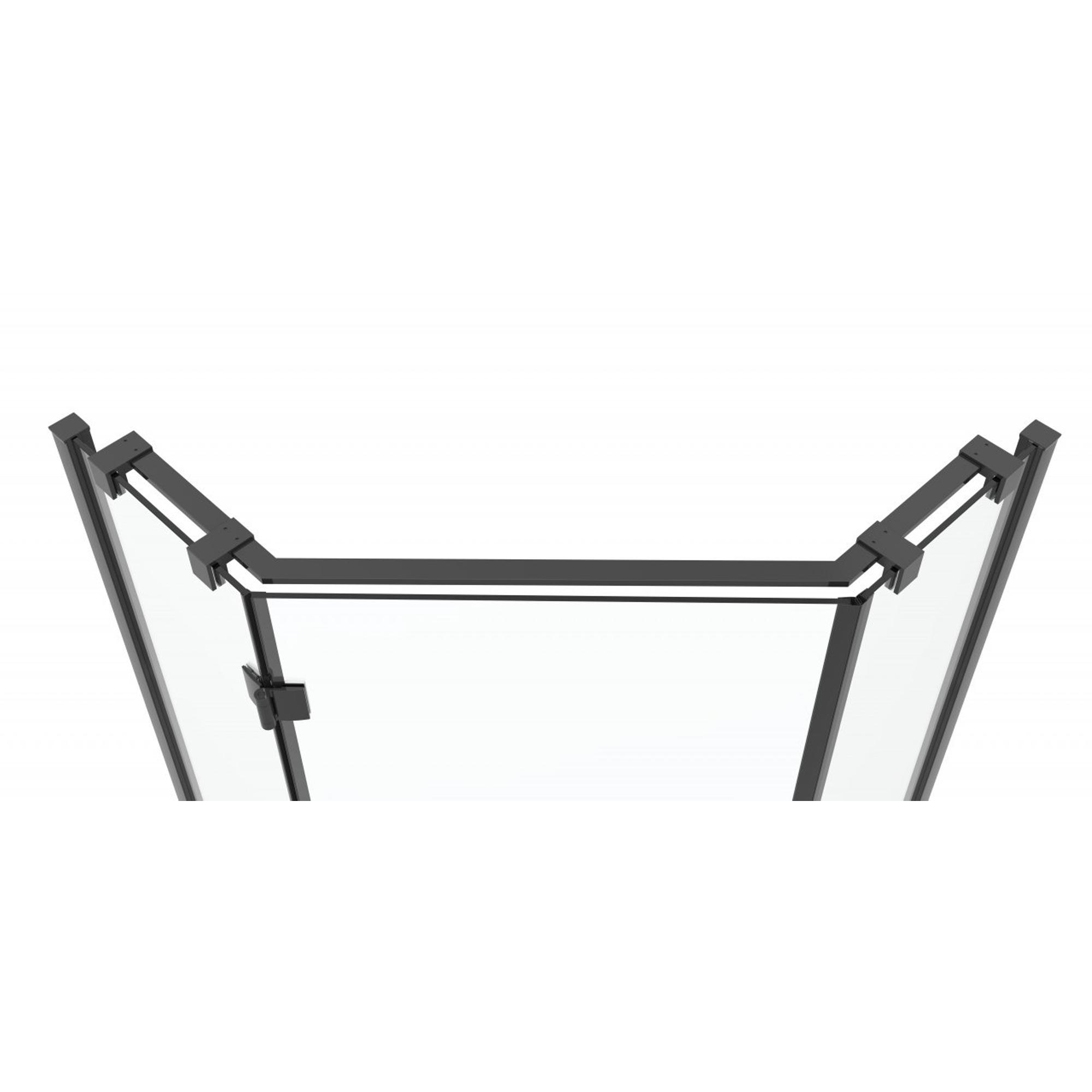 Van Rijn Products ST05 Vijfhoek cabine 87-89x200cm helder clear glas 8 mm, zwart stabilisatiestang over glas + greep.