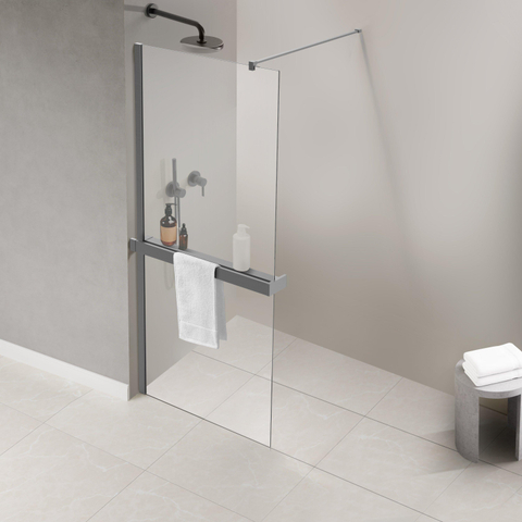 Het Fortifura Galeria handdoekrek voor inloopdouche in geborsteld gunmetal is een ware eyecatcher in elke badkamer. De elegante afwerking en het moderne ontwerp voegen een vleugje luxe toe aan de ruimte. Het rek is ontworpen met oog voor detail en straalt klasse uit.