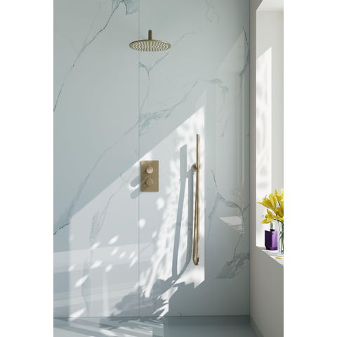 De Fortifura Calvi Inbouw Regendoucheset straalt luxe uit in elk detail. Het thermostatische systeem zorgt voor een constante watertemperatuur, terwijl de wandarm de doucheset stevig op zijn plaats houdt. De geborsteld messing PVD afwerking geeft een elegante uitstraling die past bij elke moderne badkamer. Met de 30cm hoofddouche en staaf handdouche geniet je van ultiem comfort en gemak tijdens het douchen.