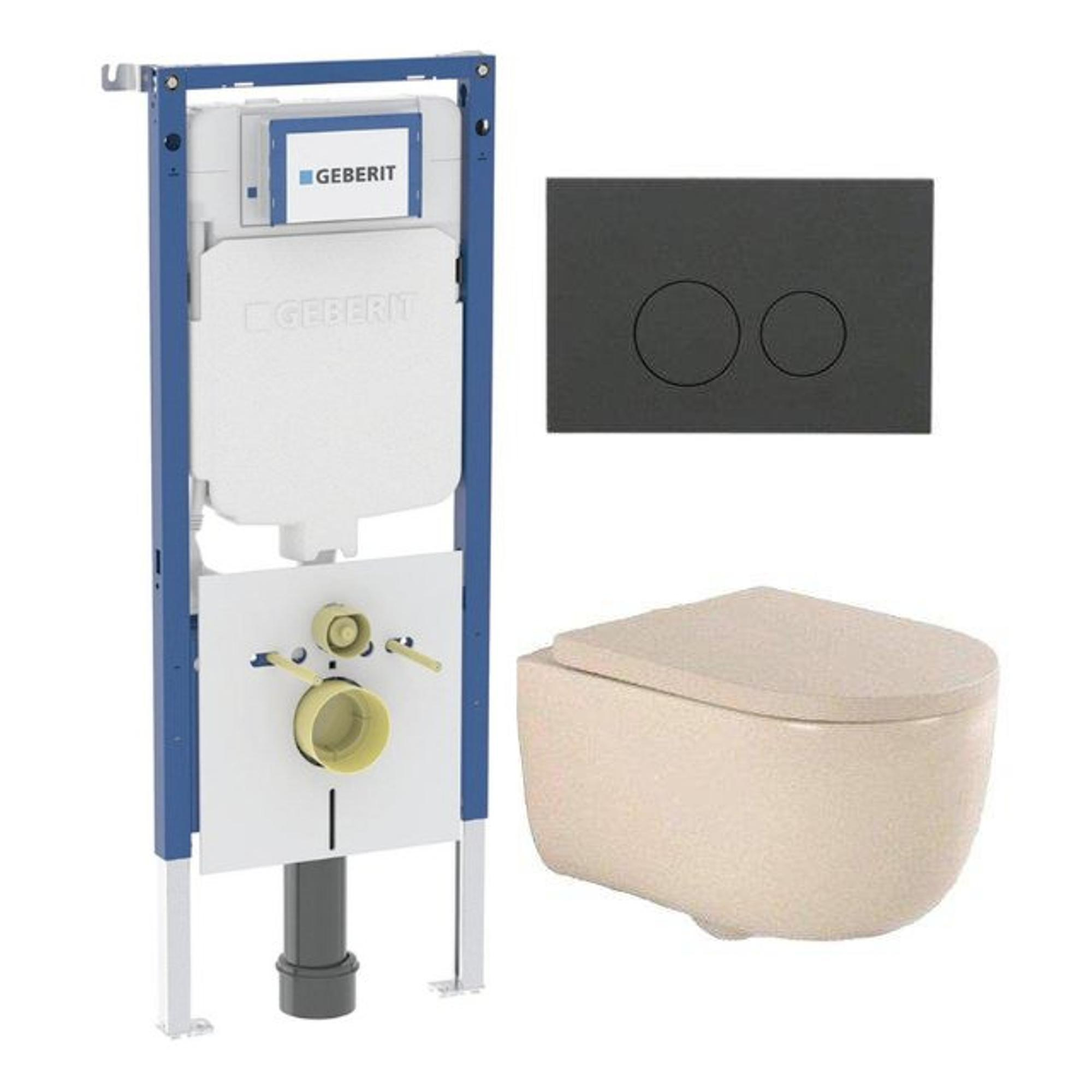 QeramiQ Dely Swirl Toiletset - 36.3x51.7cm - Geberit UP720 inbouwreservoir - 35mm zitting - mat antraciet bedieningsplaat - ronde knoppen - beige
