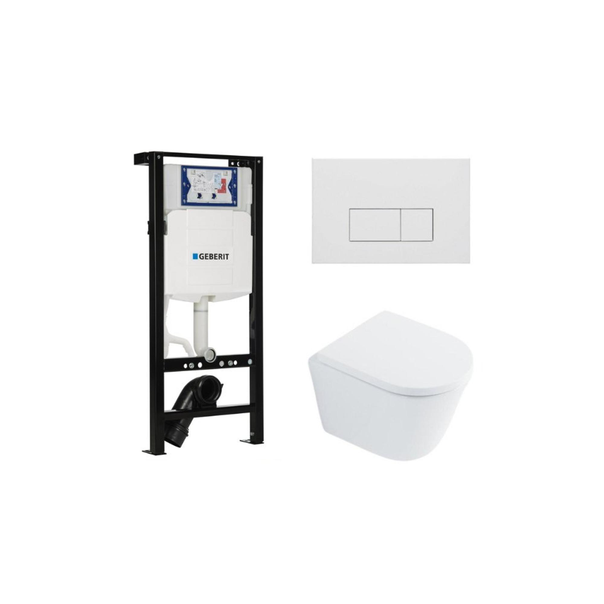 QeramiQ Dely Toiletset - 36.3x51.7cm - diepspoel - rimless - Geberit UP320 inbouwreservoir - softclose toiletzitting - mat witte bedieningsplaat - rechtehoekige knoppen - wit glans