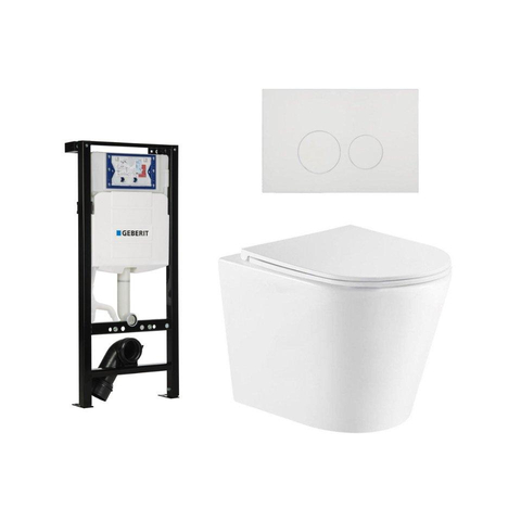 QeramiQ Dely Toiletset - 36.3x51.7cm - diepspoel - rimless - Geberit UP320 inbouwreservoir - softclose toiletzitting - mat witte bedieningsplaat - ronde knoppen - mat wit