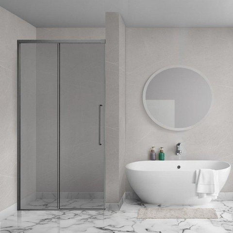 Met deze nisdeur geef je jouw badkamer direct een moderne en luxe uitstraling. De combinatie van rookglas en een mat gunmetal kleurige afwerking zorgt voor een subtiele, maar stijlvolle sfeer die je badkamer transformeert tot een rustgevende oase. Dankzij het veiligheidsglas en de antikalkbehandeling blijft de deur niet alleen mooi, maar ook gemakkelijk schoon te houden. Het praktische formaat van 160x200 cm past perfect in een nis, waardoor je optimaal gebruikmaakt van de beschikbare ruimte zonder in te leveren op comfort. Deze deur biedt je een strakke, tijdloze oplossing die jouw dagelijkse douche-ervaring aangenamer maakt en je badkamer een hoogwaardige uitstraling geeft.