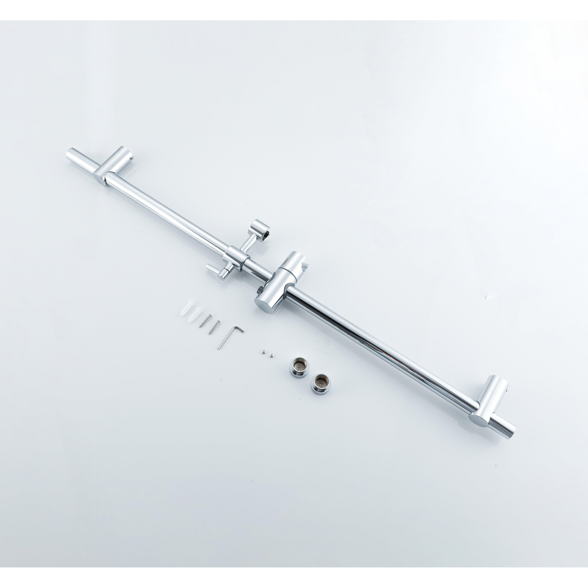 De glijstang is uitgevoerd in een tijdloze chroomkleur die een frisse en moderne uitstraling geeft aan je badkamer. Het glanzende oppervlak reflecteert het licht subtiel, waardoor je ruimte optisch groter en lichter lijkt. Door het strakke design voeg je een elegant element toe zonder dat het overheerst. Dit maakt het eenvoudig om de glijstang te combineren met andere badkameraccessoires en kranen, zodat je een samenhangend geheel creëert dat indruk maakt op iedereen die jouw badkamer betreedt.