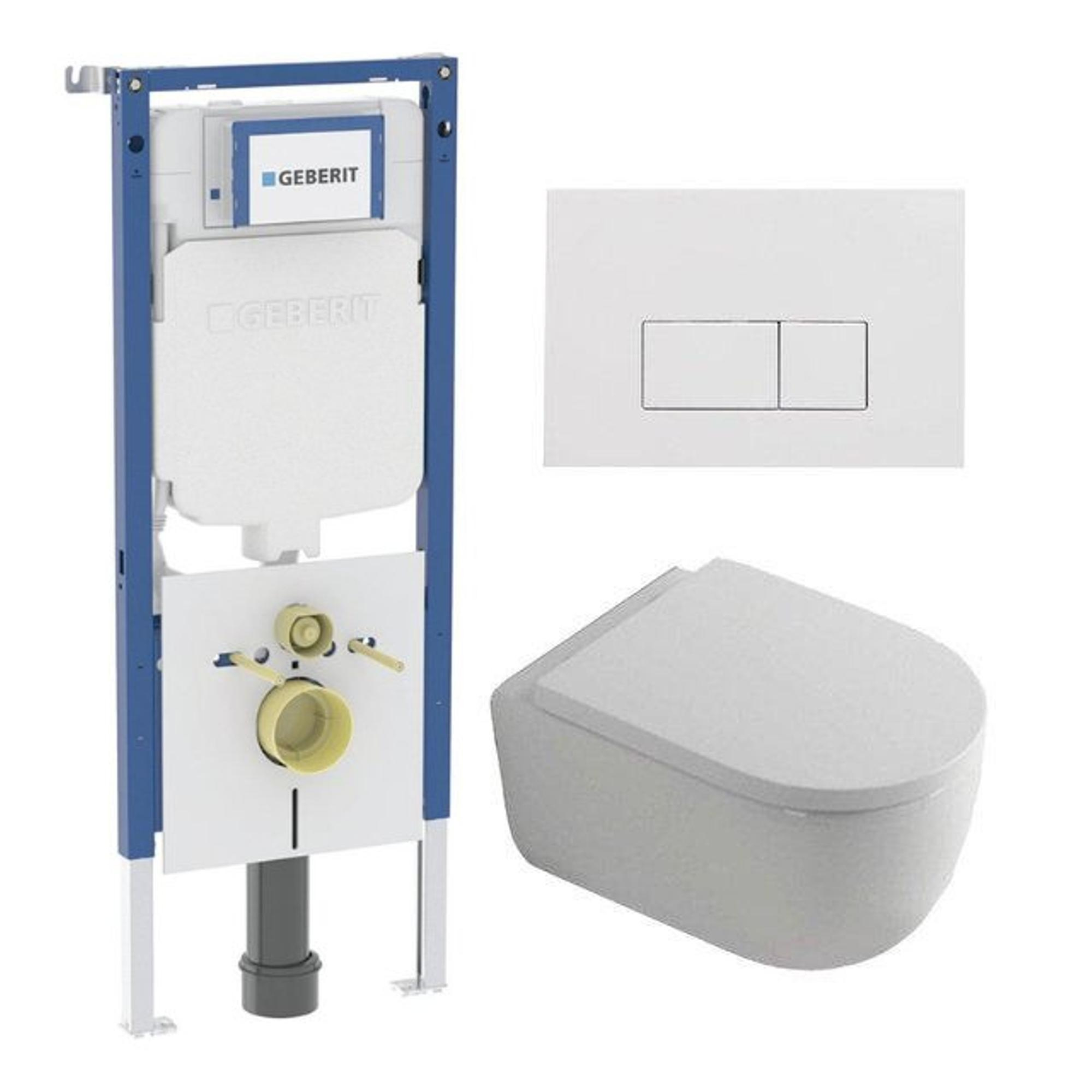 QeramiQ Dely Swirl Toiletset - 36.3x51.7cm - Geberit UP720 inbouwreservoir - 35mm zitting - glans witte bedieningsplaat - rechthoekige knoppen - wit glans