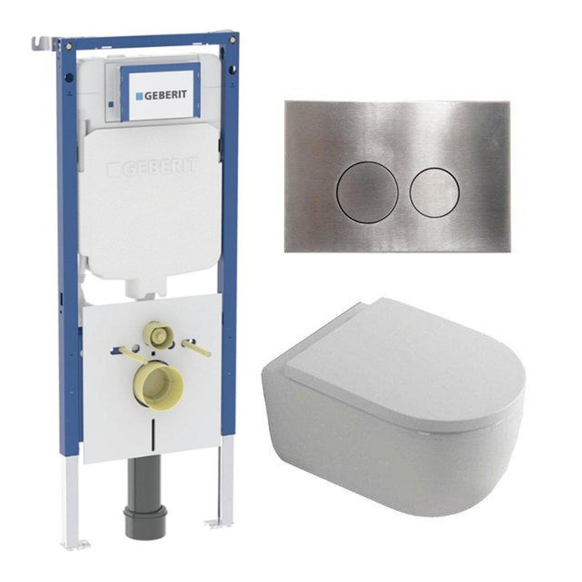 QeramiQ Dely Swirl Toiletset - 36.3x51.7cm - Geberit UP720 inbouwreservoir - 35mm zitting - steel bedieningsplaat - ronde knoppen - wit glans
