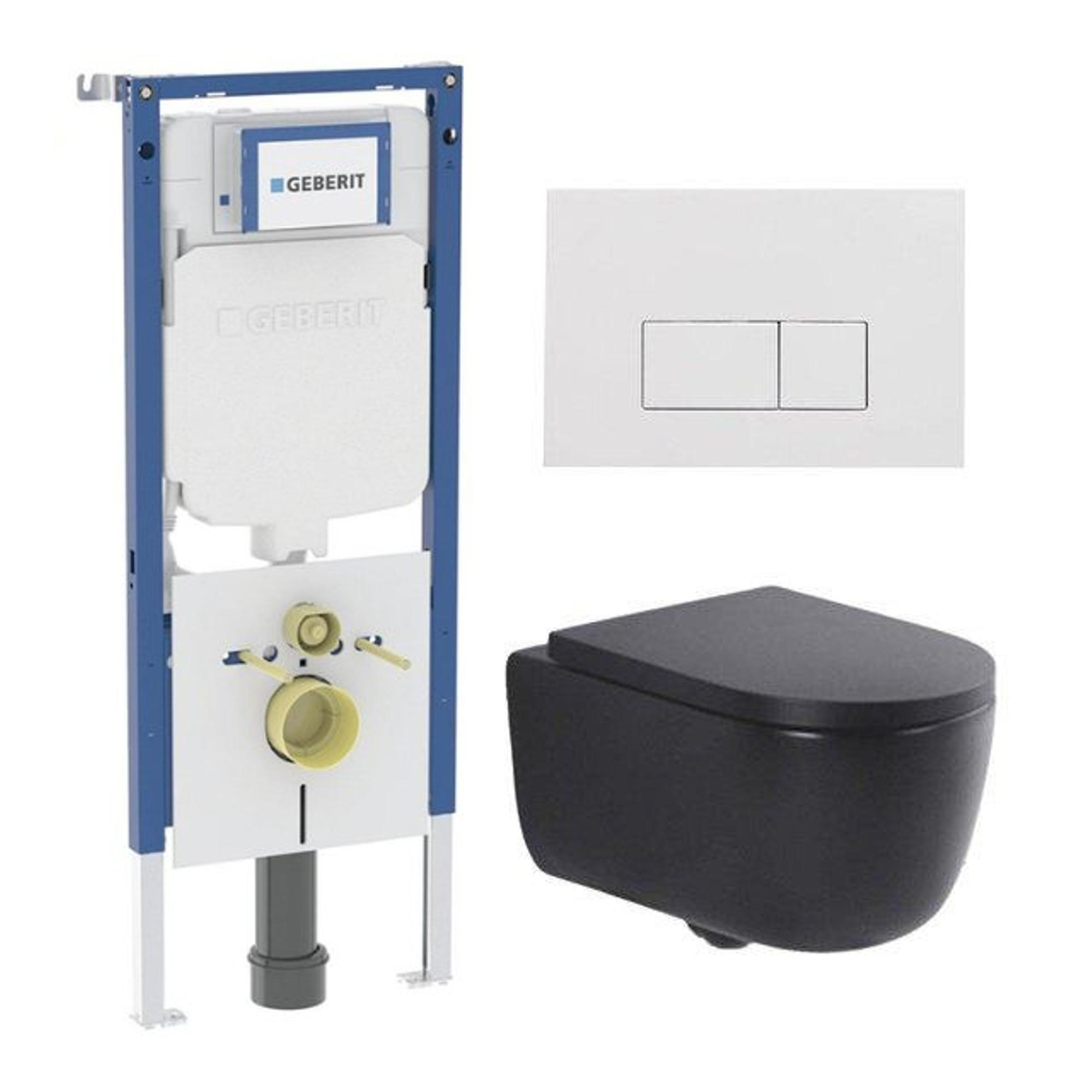 QeramiQ Dely Swirl Toiletset - 36.3x51.7cm - Geberit UP720 inbouwreservoir - 35mm zitting - glans witte bedieningsplaat - rechthoekige knoppen - mat zwart