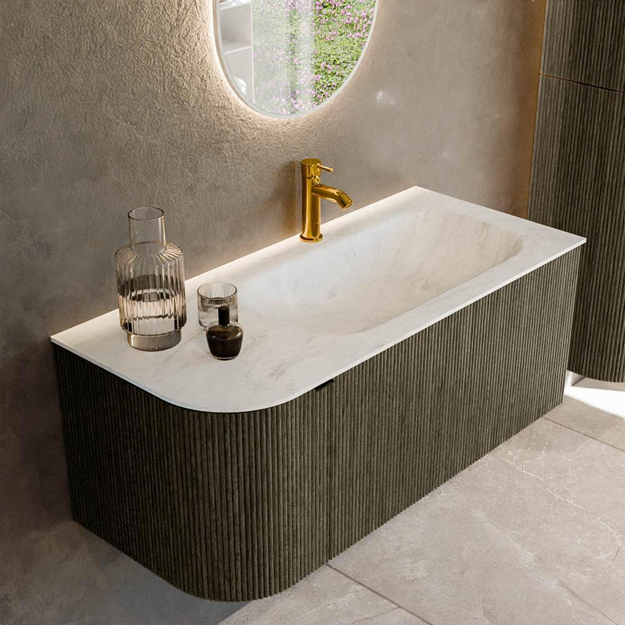 Mondiaz KURVE-DLUX Badkamermeubelset - 105x46x40cm - 1 lade - 1 deur - wastafel solid surface - rechts - 1 kraangat - Shadow