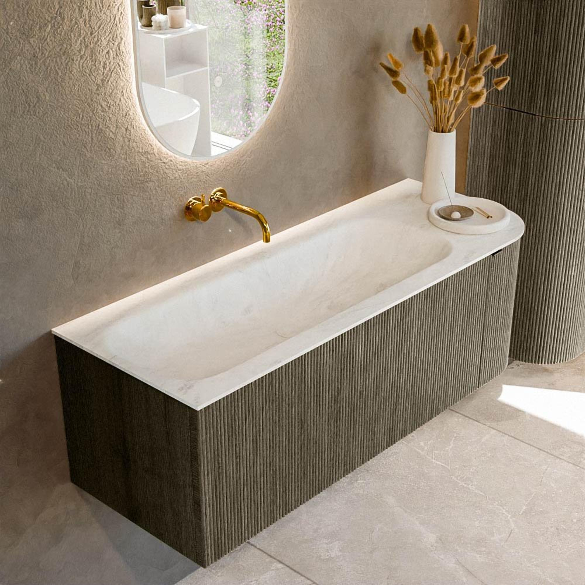 Mondiaz KURVE-DLUX Badkamermeubelset - 125x46x40cm - 1 lade - 1 deur - wastafel solid surface - links - zonder kraangat - Shadow