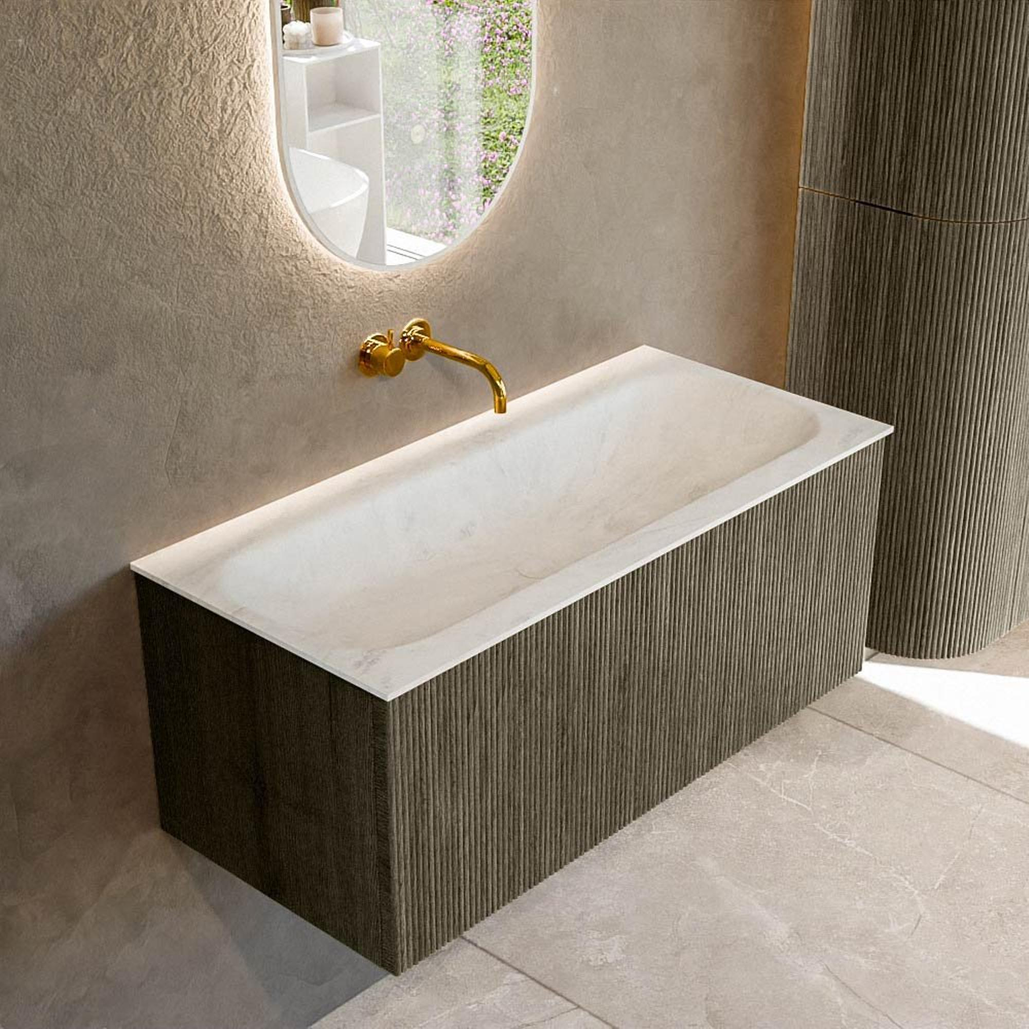 Mondiaz KURVE-DLUX Badkamermeubelset - 100x46x40cm - 1 lade - wastafel solid surface - midden - zonder kraangat - Shadow