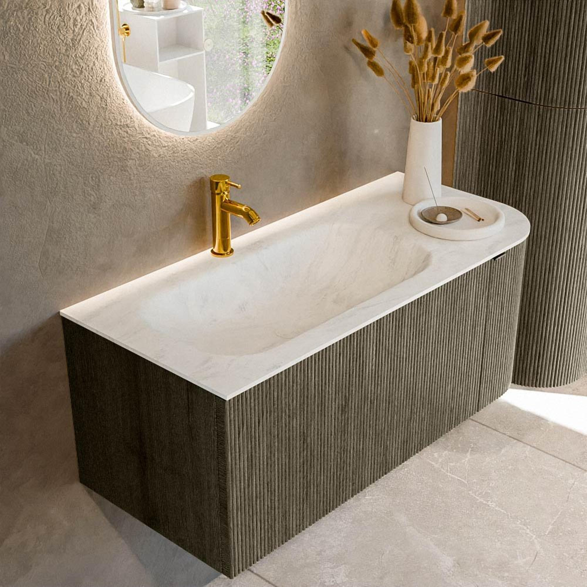Mondiaz KURVE-DLUX Badkamermeubelset - 105x46x40cm - 1 lade - 1 deur - wastafel solid surface - links - 1 kraangat - Shadow