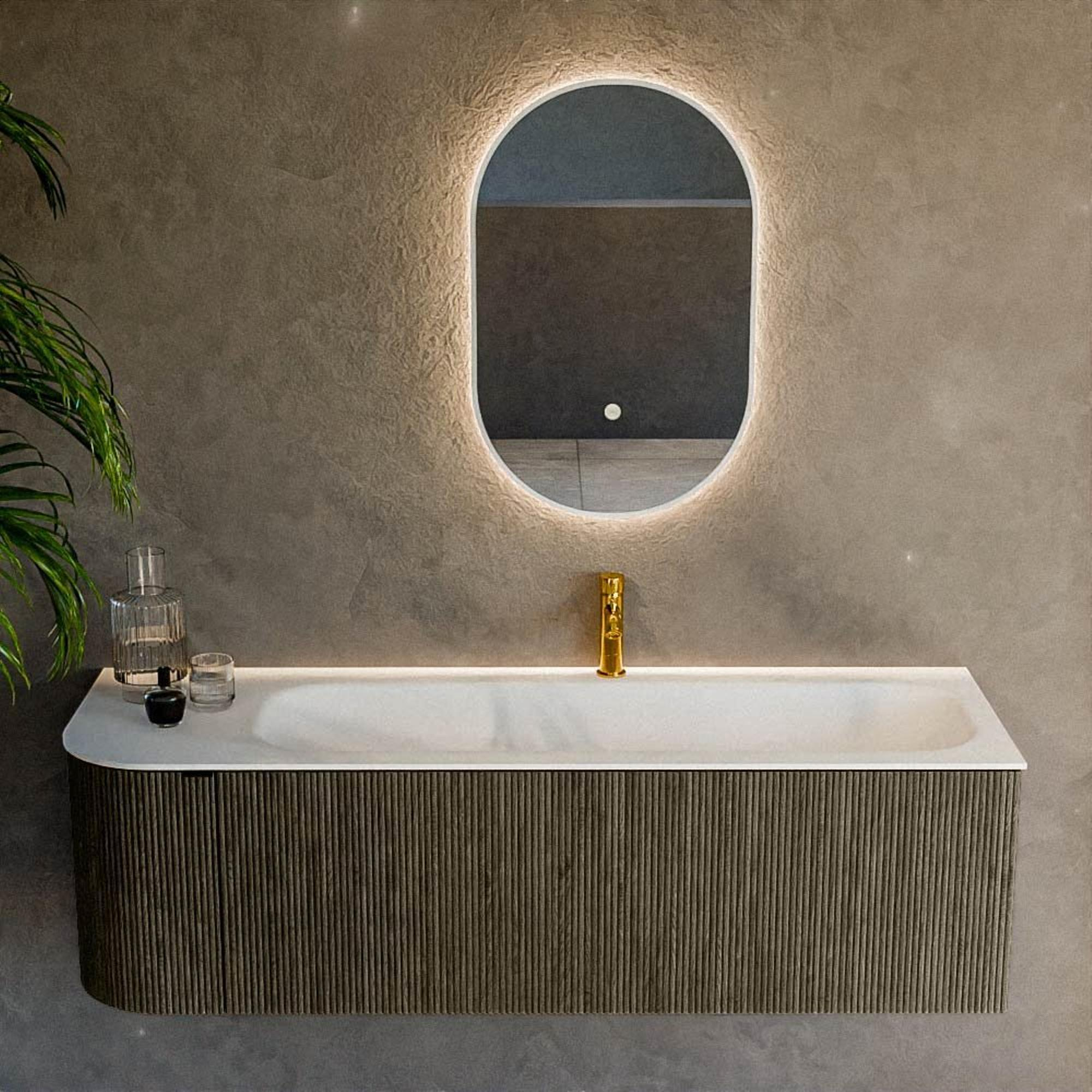 Maak kennis met een adembenemende aanwinst voor jouw badkamer. Dit badkamermeubel combineert functionaliteit met esthetiek op een manier die elke badkamer transformeert tot een luxe ruimte. Door zijn doordachte ontwerp straalt het meubelstuk pure elegantie uit. Met zijn strakke lijnen en slimme indeling biedt het zowel stijl als eenvoud, waardoor het de perfecte keuze is voor elke ruimte die baadt in modern comfort. Deze set is subtiel doch opvallend en is ontworpen om aan te sluiten bij jouw persoonlijke stijl en behoeften. De wastafel in solid surface zorgt voor een ongeëvenaarde duurzaamheid en een prachtig matte finish. Met een royale afmeting past dit meubelstuk moeiteloos in grotere badkamers, terwijl het slimme ontwerp veelzijdigheid verzekert voor elke inrichting. Door het gebruik van de beste materialen en een oog voor detail is deze set niet alleen visueel aantrekkelijk, maar ook een investering in kwaliteit voor de lange termijn. Of je nu houdt van minimalisme of een meer uitgewerkte inrichting, dit item vormt de perfecte aanvulling en trekt moeiteloos de aandacht door zijn tijdloze kwaliteit en krachtige aanwezigheid.