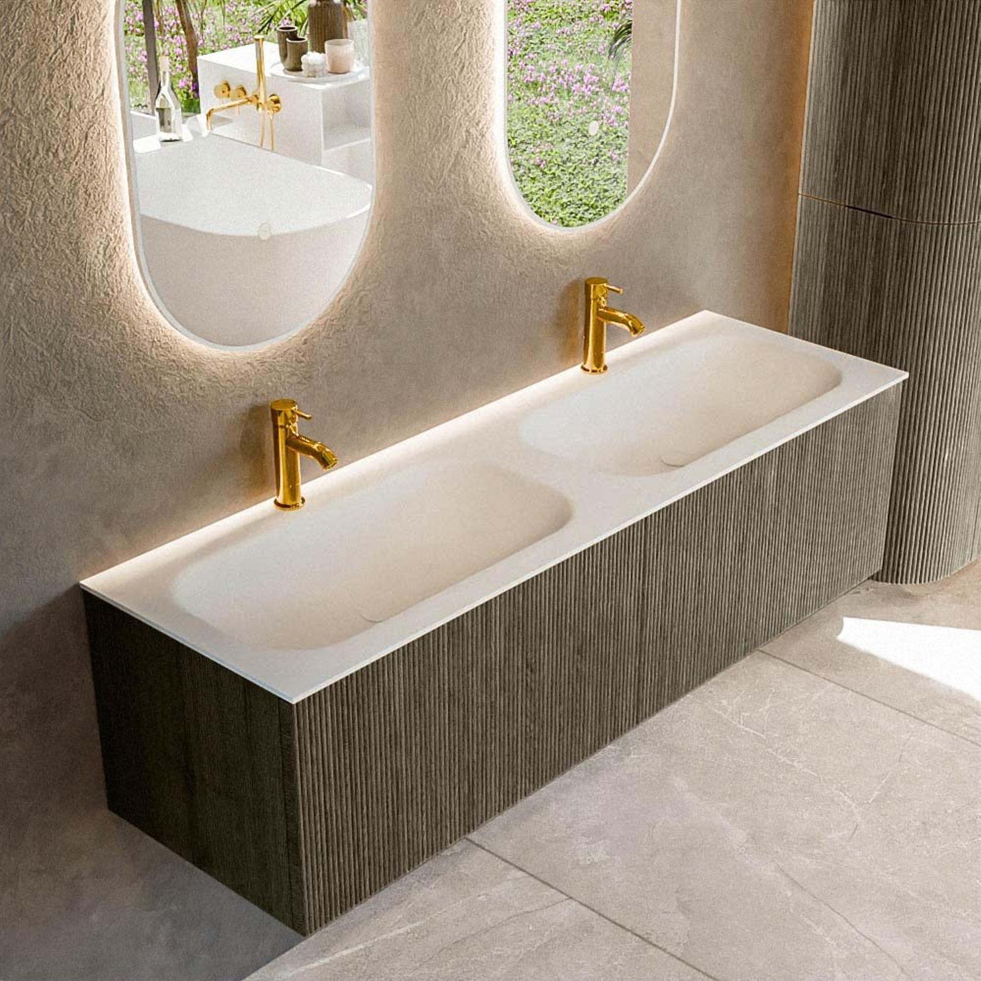 Mondiaz KURVE Badkamermeubelset - 150x46x40cm - 2 lade - wastafel solid surface - dubbel - 2 kraangaten - Shadow
