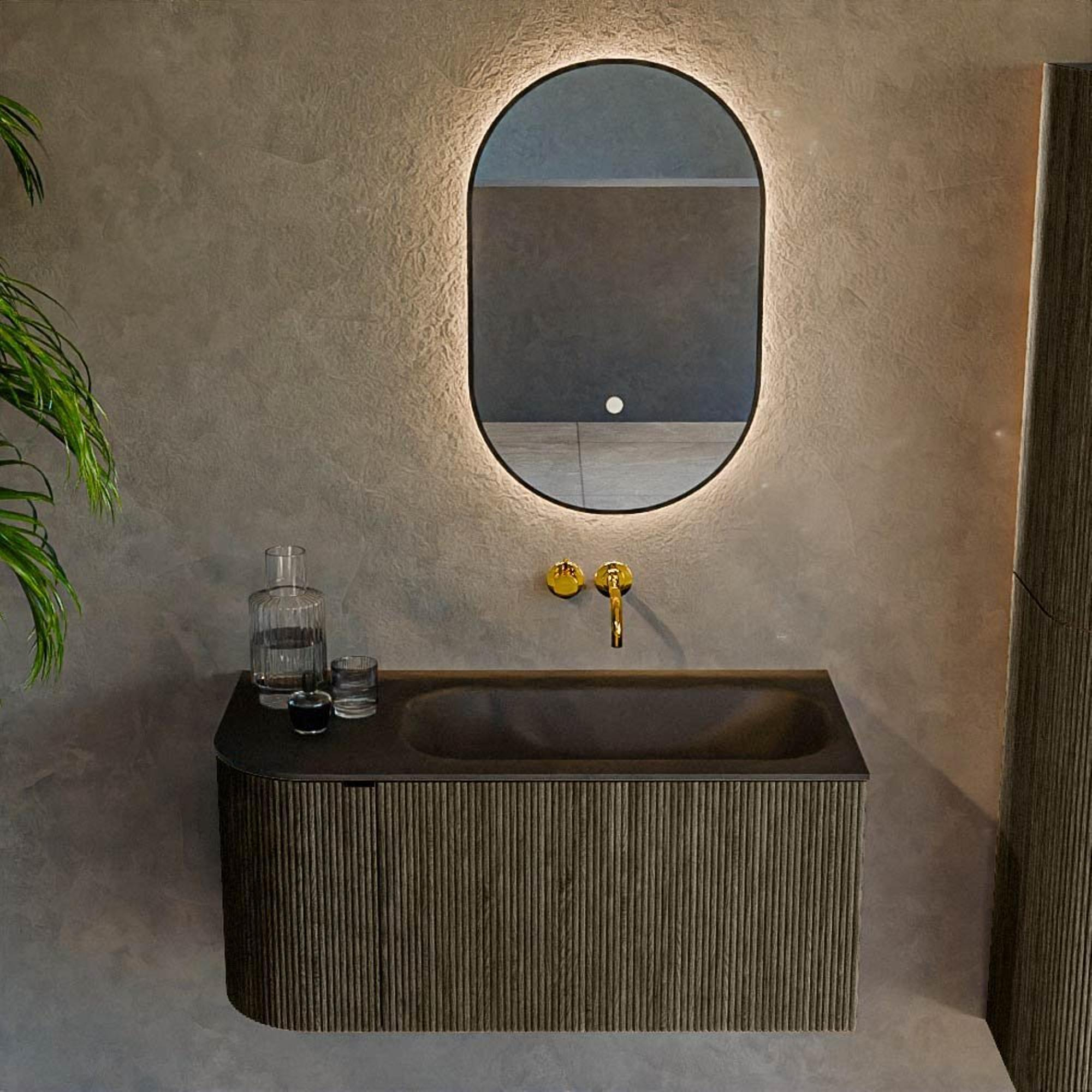 Mondiaz KURVE Badkamermeubelset - 95x46x40cm - 1 lade - 1 deur - wastafel solid surface - rechts - zonder kraangat - Shadow