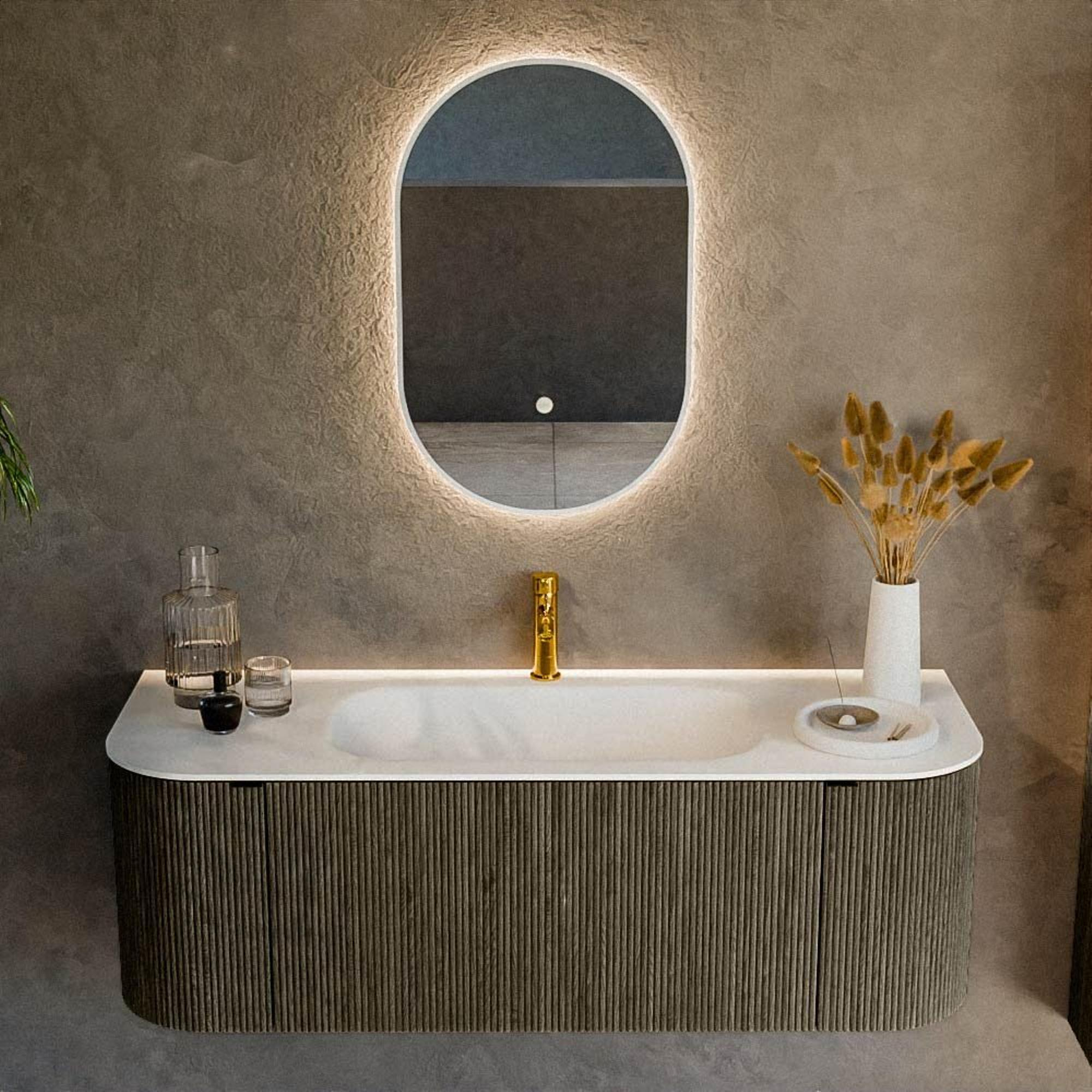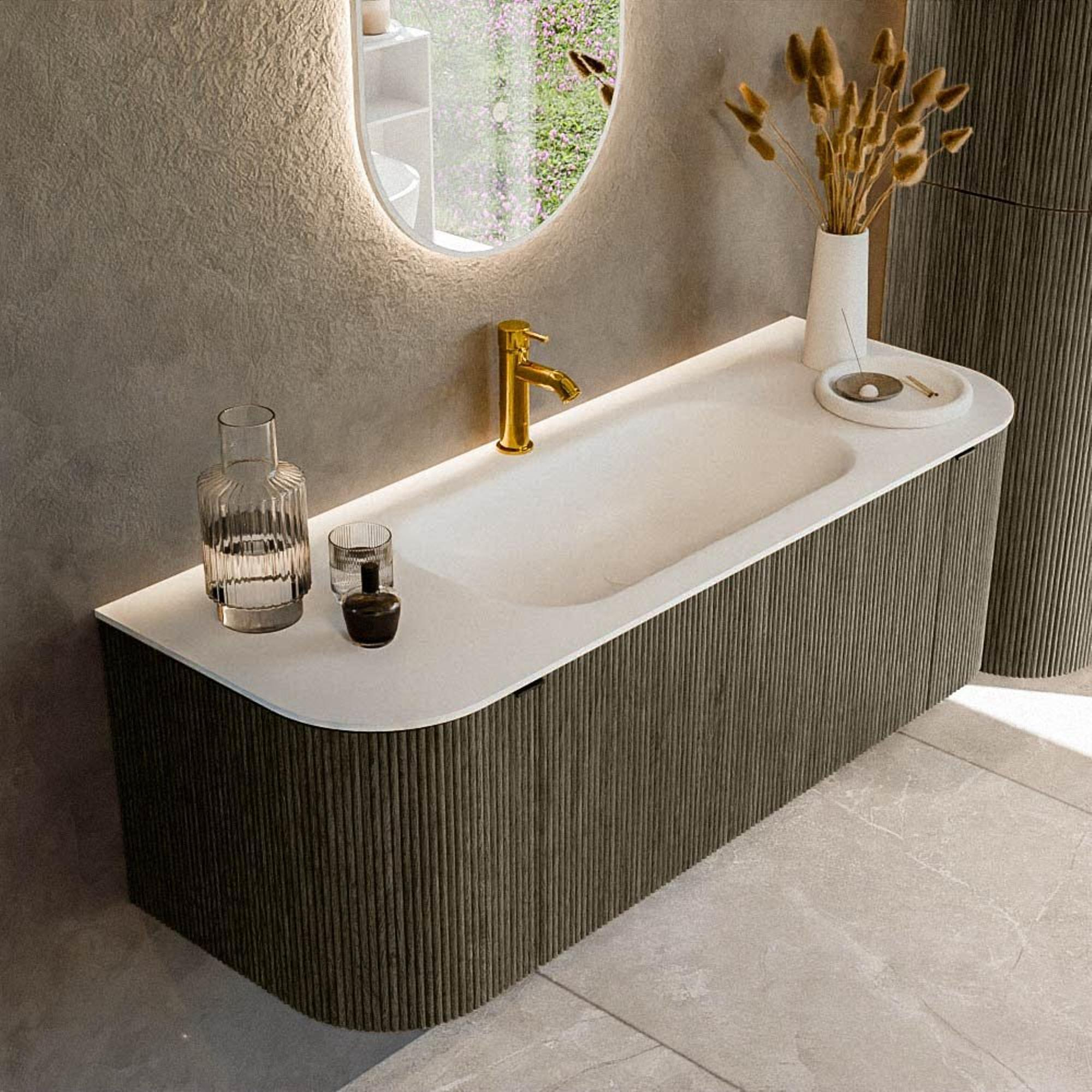 Mondiaz KURVE Badkamermeubelset - 130x46x40cm - 1 lade - 2 deuren - wastafel solid surface - midden - 1 kraangat - Shadow