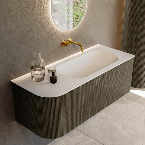 Mondiaz KURVE Badkamermeubelset - 115x46x40cm - 1 lade - 1 deur - wastafel solid surface - rechts - zonder kraangat - Shadow