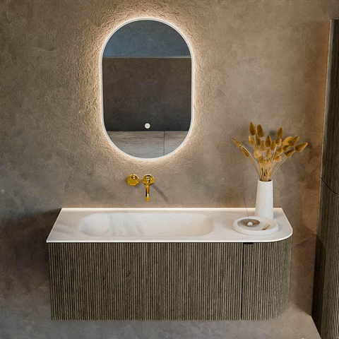 Mondiaz KURVE Badkamermeubelset - 115x46x40cm - 1 lade - 1 deur - wastafel solid surface - links - zonder kraangat - Shadow