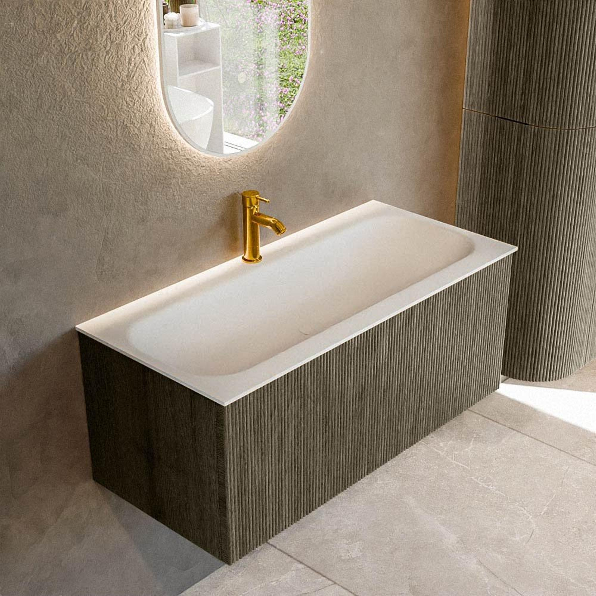 Mondiaz KURVE Badkamermeubelset - 100x46x40cm - 1 lade - wastafel solid surface - midden - 1 kraangat - Shadow