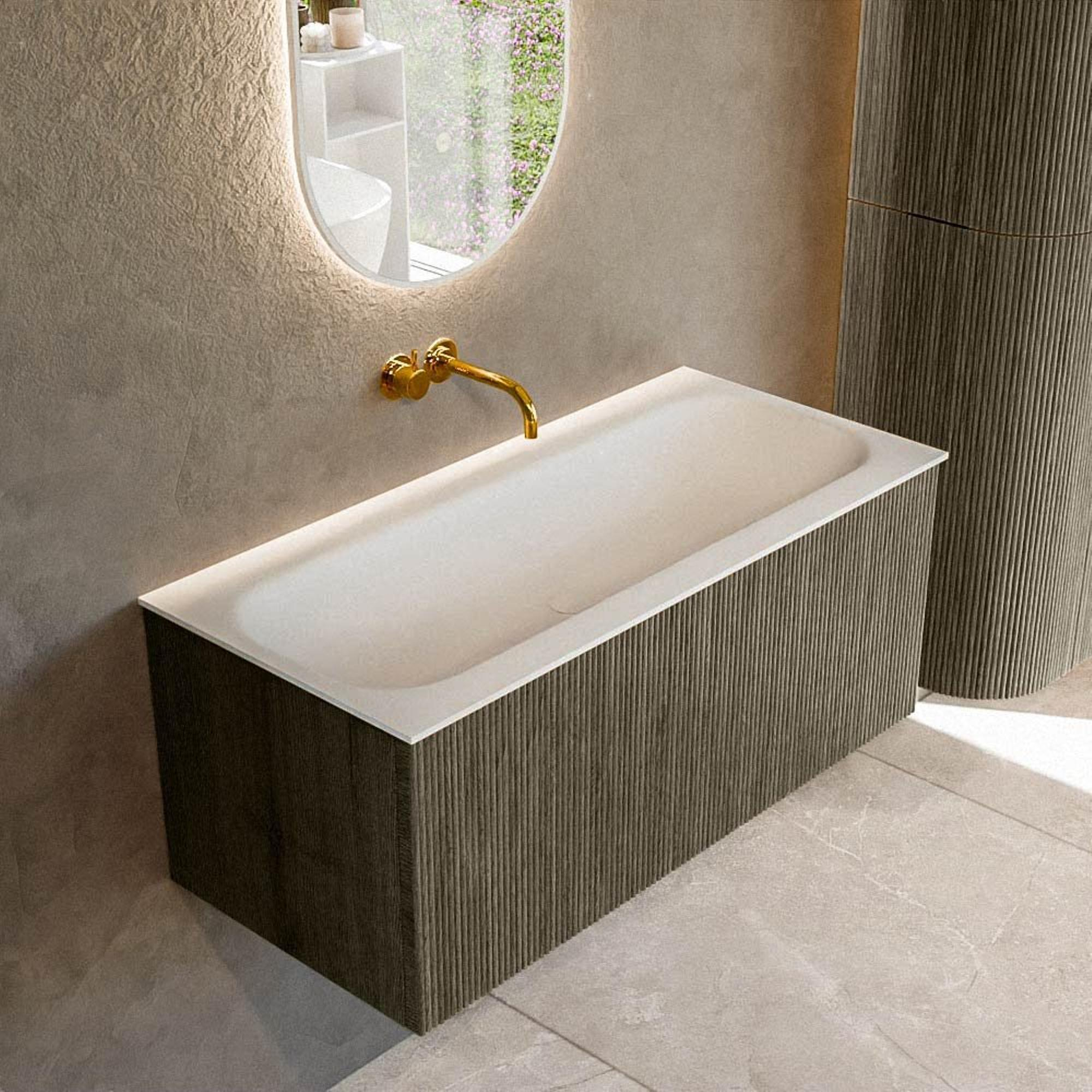 Functioneel Naast zijn stijlvolle uitstraling biedt dit badkamermeubel indrukwekkende functionaliteit. De ruime lade biedt voldoende opbergruimte voor al jouw essentiële badkamerartikelen, van handdoeken en schoonheidsproducten tot schoonmaakspullen. Door alles netjes opgeborgen te houden, ziet jouw badkamer er altijd opgeruimd en georganiseerd uit. De solid surface wastafel is niet alleen een lust voor het oog, maar ook uiterst praktisch. Dit materiaal is bekend om zijn duurzaamheid en eenvoudige onderhoud, waardoor krassen en vlekken gemakkelijk te voorkomen zijn. Bovendien kan de wastafel dankzij zijn minimalistische ontwerp en robuuste materiaal gemakkelijk worden schoongemaakt, zodat je meer tijd overhoudt voor jouw ochtendroutine. De afwezigheid van een kraangat biedt extra flexibiliteit bij de installatie, zodat je je badkamer precies zo kunt inrichten als jij dat wilt. Ja, dit meubelstuk is echt ontworpen met jouw comfort en gemak in gedachten.