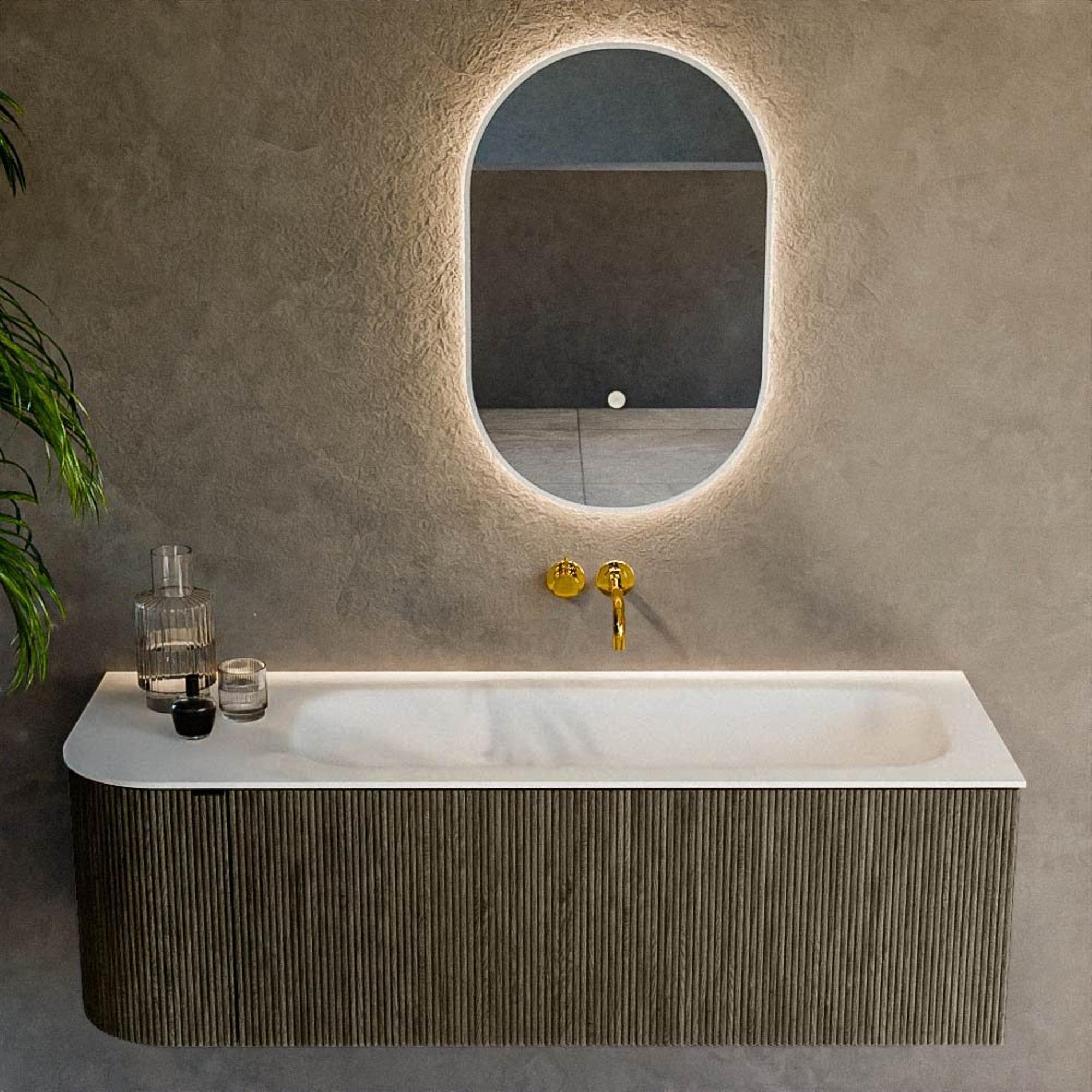Mondiaz KURVE Badkamermeubelset - 135x46x40cm - 1 lade - 1 deur - wastafel solid surface - rechts - zonder kraangat - Shadow