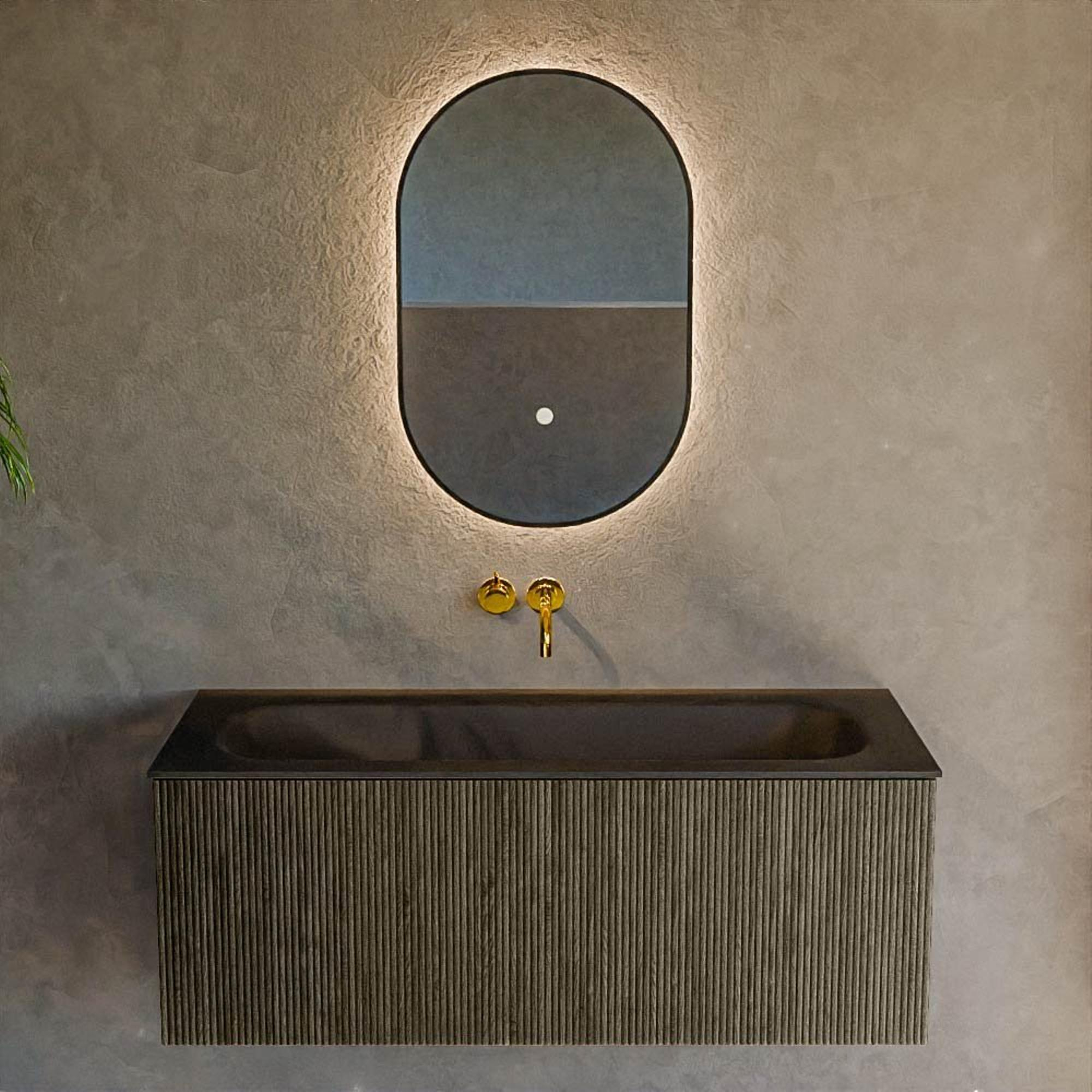Mondiaz KURVE Badkamermeubelset - 110x46x40cm - 1 lade - wastafel solid surface - midden - zonder kraangat - Shadow