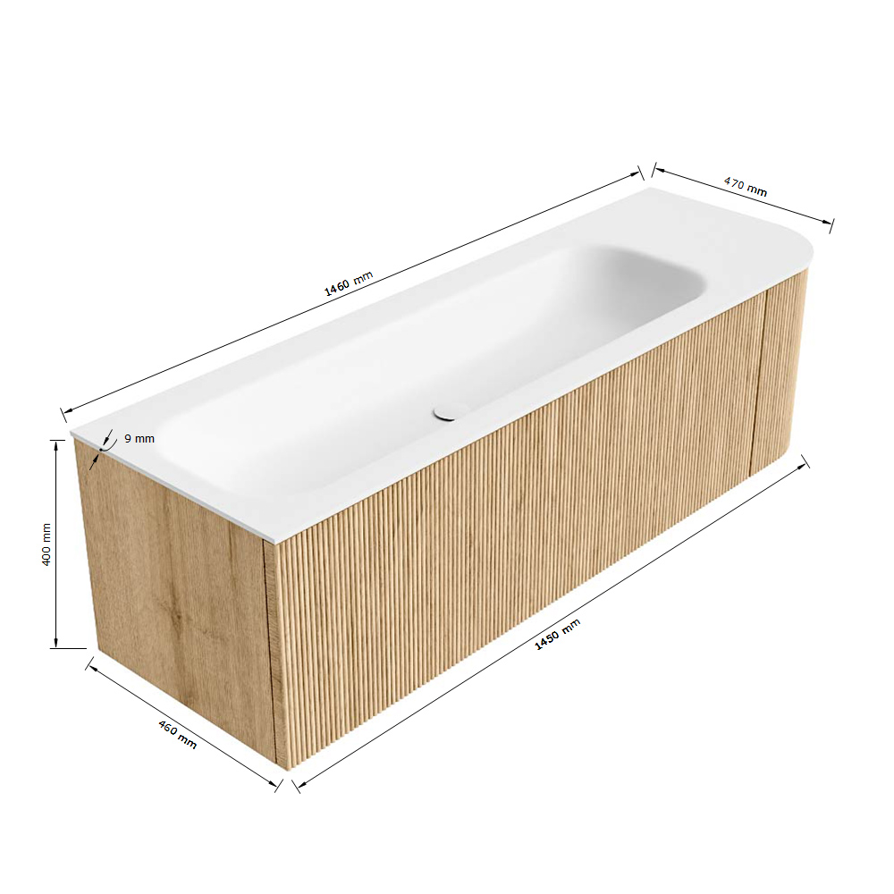 Stel je voor: een badkamermeubelset dat niet alleen functioneel is, maar ook een waar pronkstuk in jouw badkamer. Met zijn verfijnde ontwerp en aandacht voor detail, straalt het een ingetogen luxe uit die zowel uitnodigend als modern is. Deze prachtige set, gekenmerkt door zijn strakke lijnen en harmonieuze proporties, weet subtiel jouw persoonlijke stijl te weerspiegelen terwijl het tegelijkertijd voldoet aan al jouw praktische behoeften. De ruime afmetingen maken het een ideaal middelpunt voor elke badkamer, of deze nu groot of klein is. Het materiaal van de wastafel en het meubel is zorgvuldig geselecteerd om zowel duurzaamheid als schoonheid te garanderen. De solide afwerking en de perfect geplaatste details, zoals het strategisch gepositioneerde kraangat en het slimme gebruik van lades en deuren, bieden een gebruikerservaring die niet alleen esthetisch verantwoord, maar ook moeiteloos is. Bovendien is de montage eenvoudig; elk element is ontworpen met gebruiksgemak en comfort in gedachten, zodat jij meer tijd hebt om te genieten van jouw dagelijks wellnessritueel. Kortom, dit badkamermeubel combineert naadloos esthetiek met functionaliteit, waardoor het een tijdloze toevoeging is aan jouw interieur.