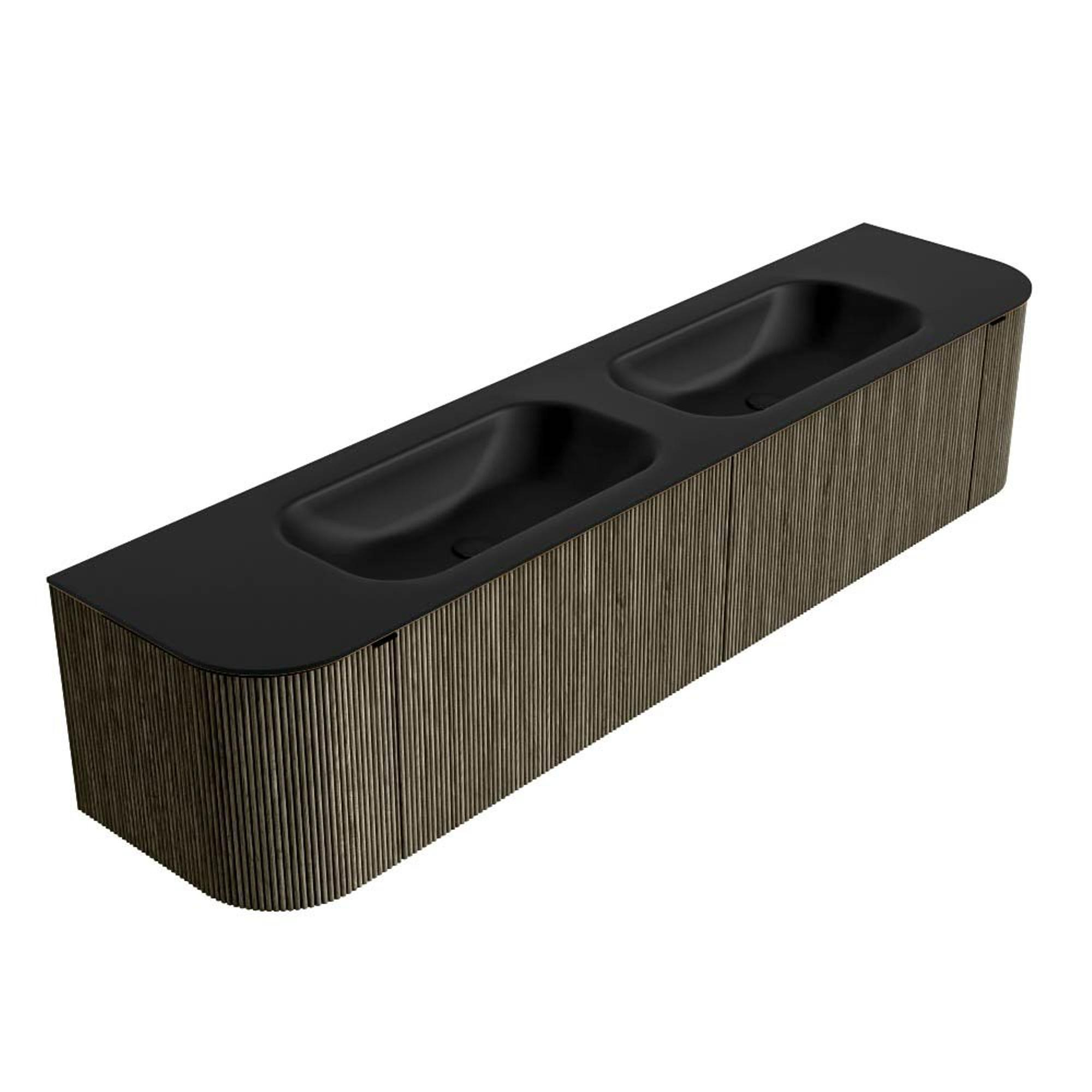 Mondiaz KURVE Badkamermeubelset - 200x46x40cm - 2 lade - 2 deuren - wastafel solid surface - dubbel - zonder kraangat - Shadow