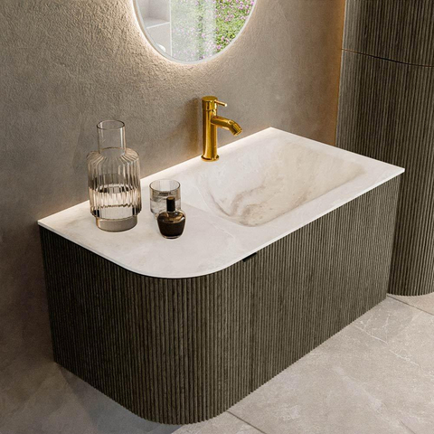 Mondiaz KURVE-DLUX Badkamermeubelset - 85x46x40cm - 1 lade - 1 deur - wastafel solid surface - rechts - 1 kraangat - Shadow