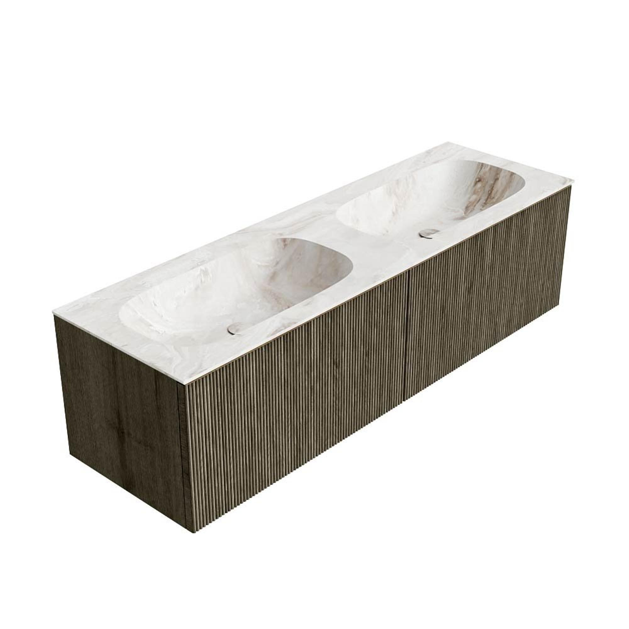 Mondiaz KURVE-DLUX Badkamermeubelset - 150x46x40cm - 2 lade - wastafel solid surface - dubbel - zonder kraangat - Shadow