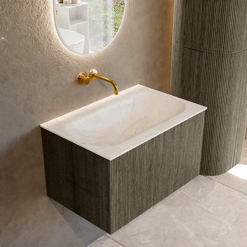 Functionaliteit Het ontwerp van deze meubelset is gebaseerd op het leveren van optimale functionaliteit voor de gebruiker. De enkele maar ruime lade biedt volop opbergruimte voor toiletartikelen en andere benodigdheden, waardoor je jouw ruimte netjes en opgeruimd houdt. De lade is eenvoudig te openen en te sluiten, dankzij het gebruik van kwalitatief hoogwaardige ladegeleiders die een soepele gebruikservaring verzekeren. Daarnaast biedt het ontbreken van een kraangat flexibiliteit, omdat je zo een kraan naar keuze kunt toevoegen, passend bij jouw unieke stijl en gebruiksbehoeften. De wastafel, vervaardigd uit solid surface, biedt een strakke en naadloze afwerking die gemakkelijk schoon te houden is en bestand is tegen dagelijkse slijtage. Deze functionele eigenschappen zorgen ervoor dat je niet alleen een stijlvolle, maar ook een praktische aanvulling op je badkamerinrichting hebt. Deze meubelset versterkt de efficiëntie van jouw badkamer, terwijl het toch een elegante uitstraling behoudt.