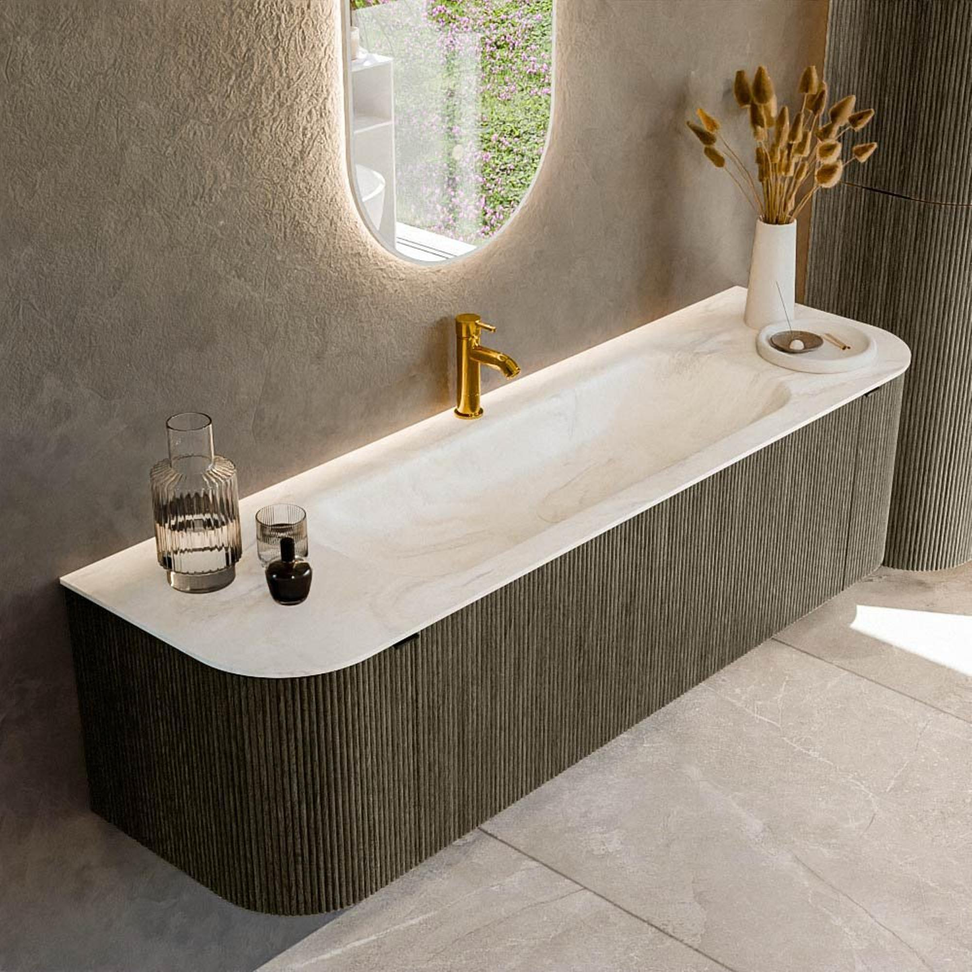 Mondiaz KURVE-DLUX Badkamermeubelset - 160x46x40cm - 1 lade - 2 deuren - wastafel solid surface - midden - 1 kraangat - Shadow