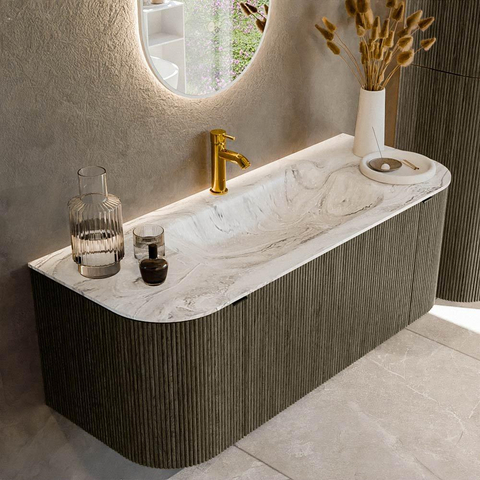 Mondiaz KURVE-DLUX Badkamermeubelset - 120x46x40cm - 1 lade - 2 deuren - wastafel solid surface - midden - 1 kraangat - Shadow