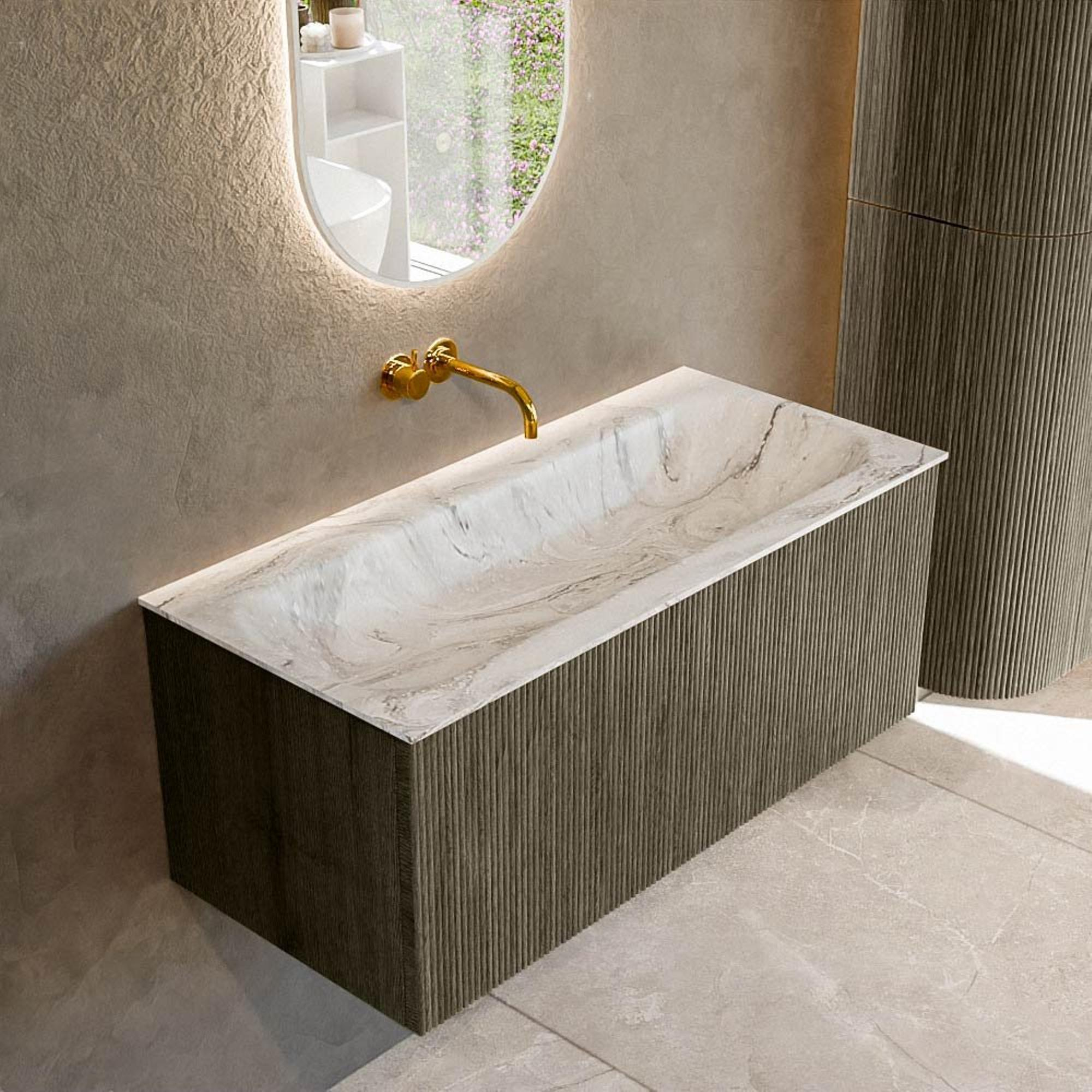 Mondiaz KURVE-DLUX Badkamermeubelset - 100x46x40cm - 1 lade - wastafel solid surface - midden - zonder kraangat - Shadow