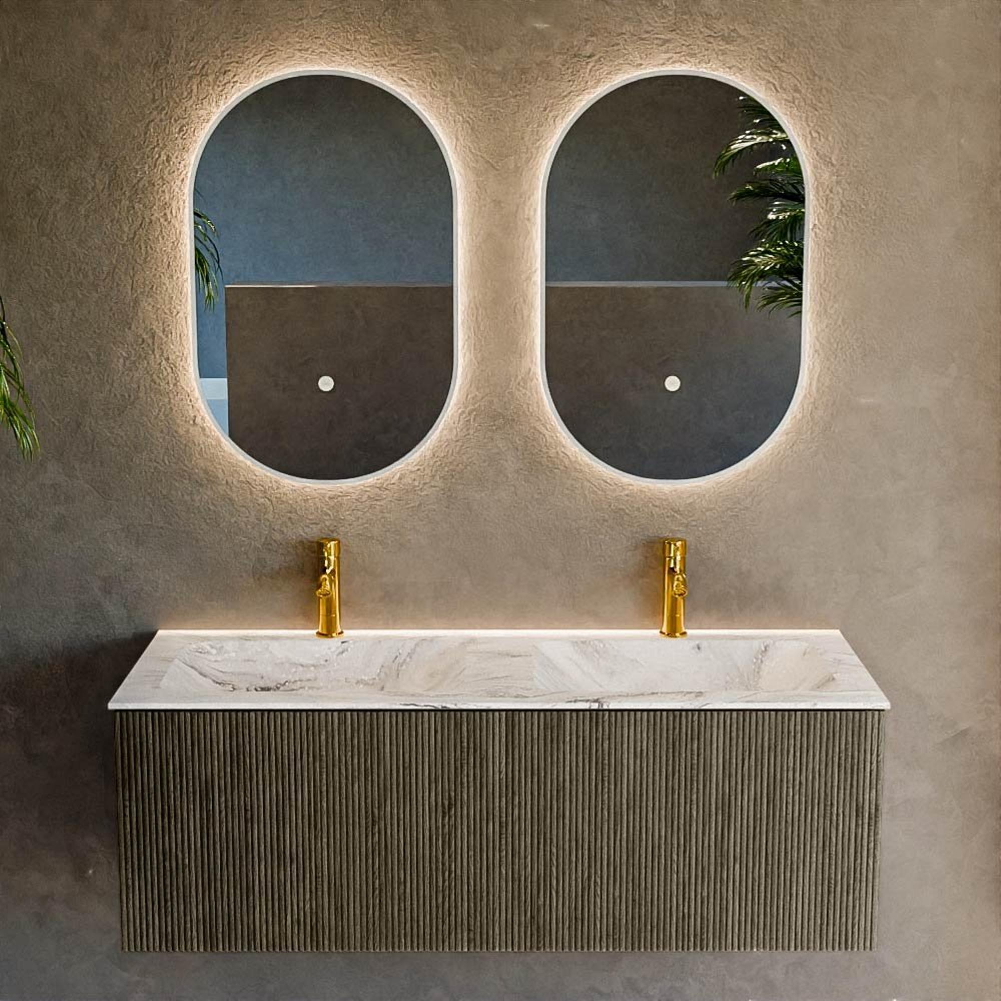 Mondiaz KURVE-DLUX Badkamermeubelset - 120x46x40cm - 1 lade - wastafel solid surface - dubbel - 2 kraangaten - Shadow