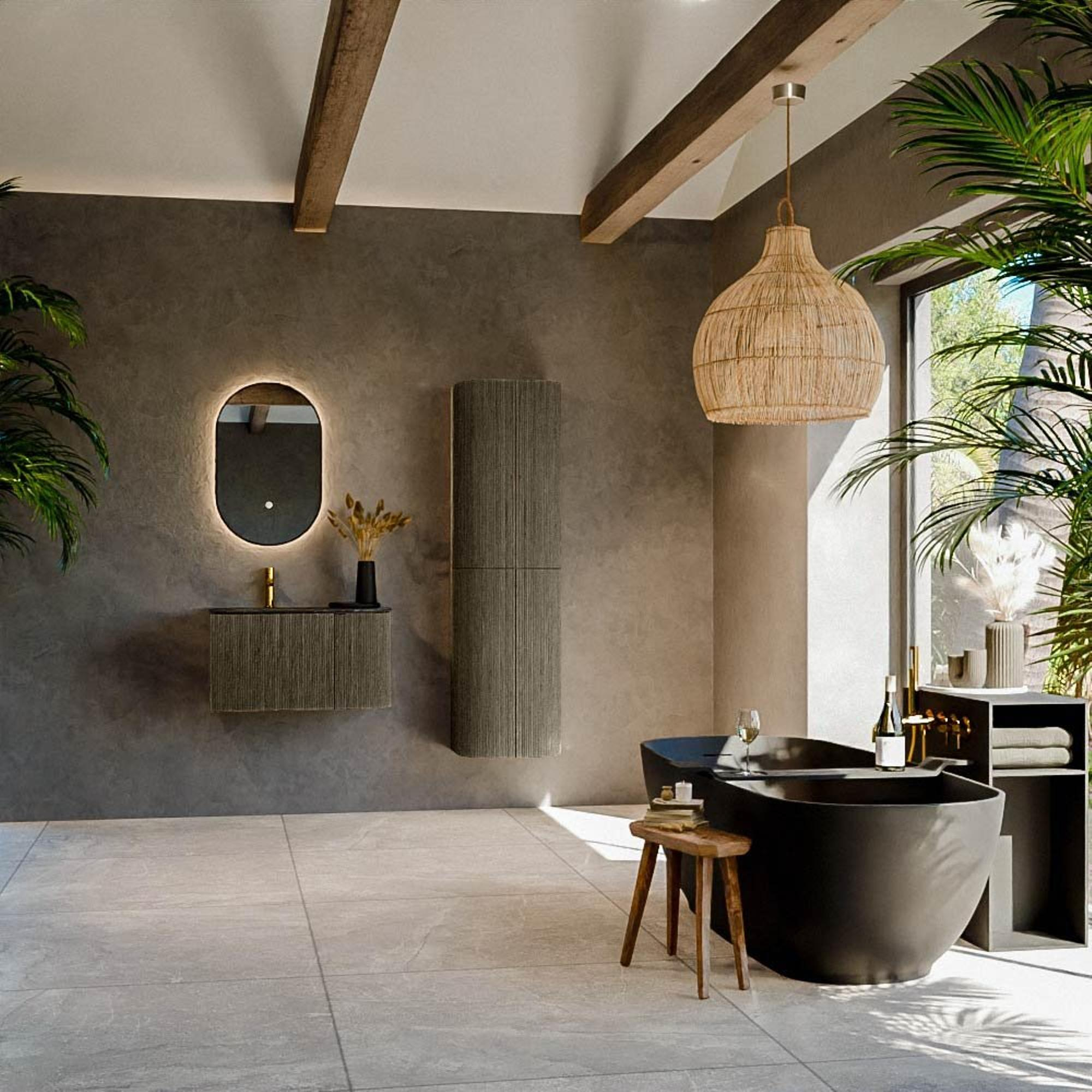 Elegant De elegante uitstraling van deze badkamermeubelset zorgt voor een vleugje klasse in elke badkamer. Dit komt mede door de subtiele lijnen en het stijlvolle ontwerp, dat moeiteloos moderniteit en traditie met elkaar verbindt. De afwerking in de kleur 'Shadow' biedt een mysterieuze en verfijnde toon die zich perfect laat combineren met verschillende kleurenschema's en texturen in de badkamer. Het verfijnde karakter van de set is ook te danken aan de manier waarop de materialen zijn gekozen en verwerkt. De combinatie van het gladde solid surface materiaal van de wastafel en de hoogwaardige afwerking van het meubel zelf, geeft je badkamer een luxueuze uitstraling die de tand des tijds doorstaat. Bovendien wordt elke keer dat je de badkamer binnenstapt, versterkt door de subtiele spel van licht en schaduw dat ontstaat dankzij de afwerking. Deze elegante badkamermeubelset is meer dan alleen een esthetische aanwinst; het is een investering in een dagelijkse ervaring van comfort en schoonheid in jouw eigen huis.
