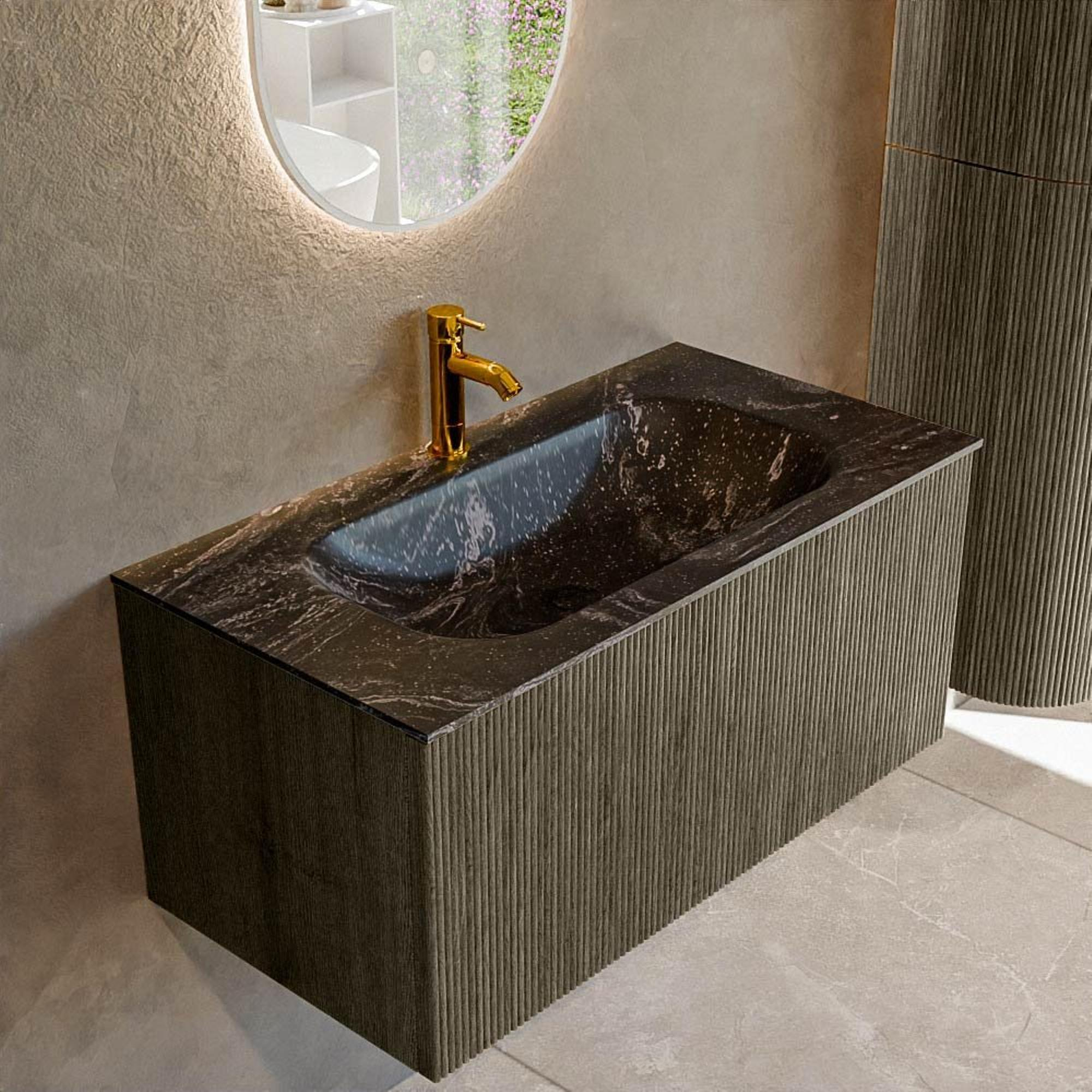 Mondiaz KURVE-DLUX Badkamermeubelset - 90x46x40cm - 1 lade - wastafel solid surface - midden - 1 kraangat - Shadow