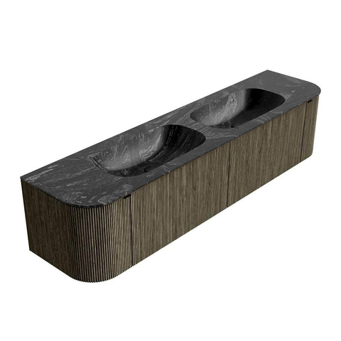 Mondiaz KURVE-DLUX Badkamermeubelset - 190x46x40cm - 2 lade - 2 deuren - wastafel solid surface - dubbel - 2 kraangaten - Shadow
