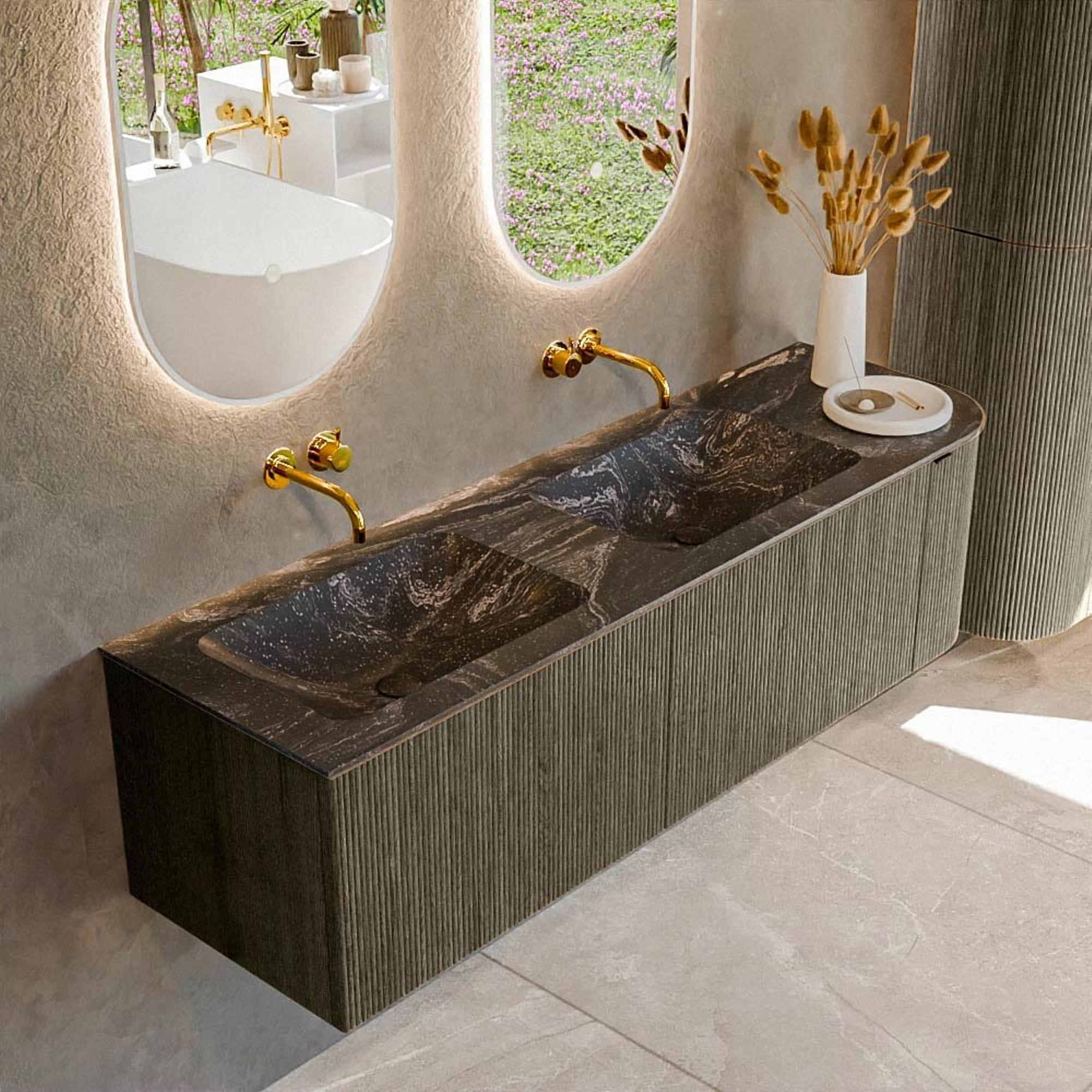 Mondiaz KURVE-DLUX Badkamermeubelset - 155x46x40cm - 2 lade - 1 deur - wastafel solid surface - dubbel / links - zonder kraangat - Shadow