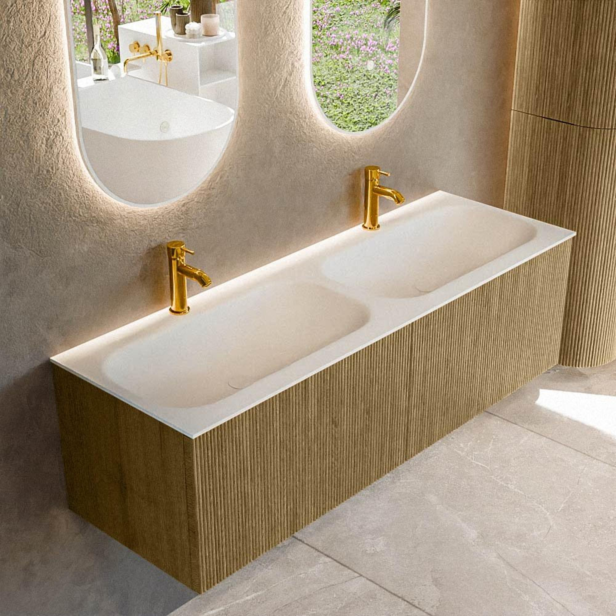 Mondiaz KURVE Badkamermeubelset - 140x46x40cm - 2 lade - wastafel solid surface - dubbel - 2 kraangaten - Dusk