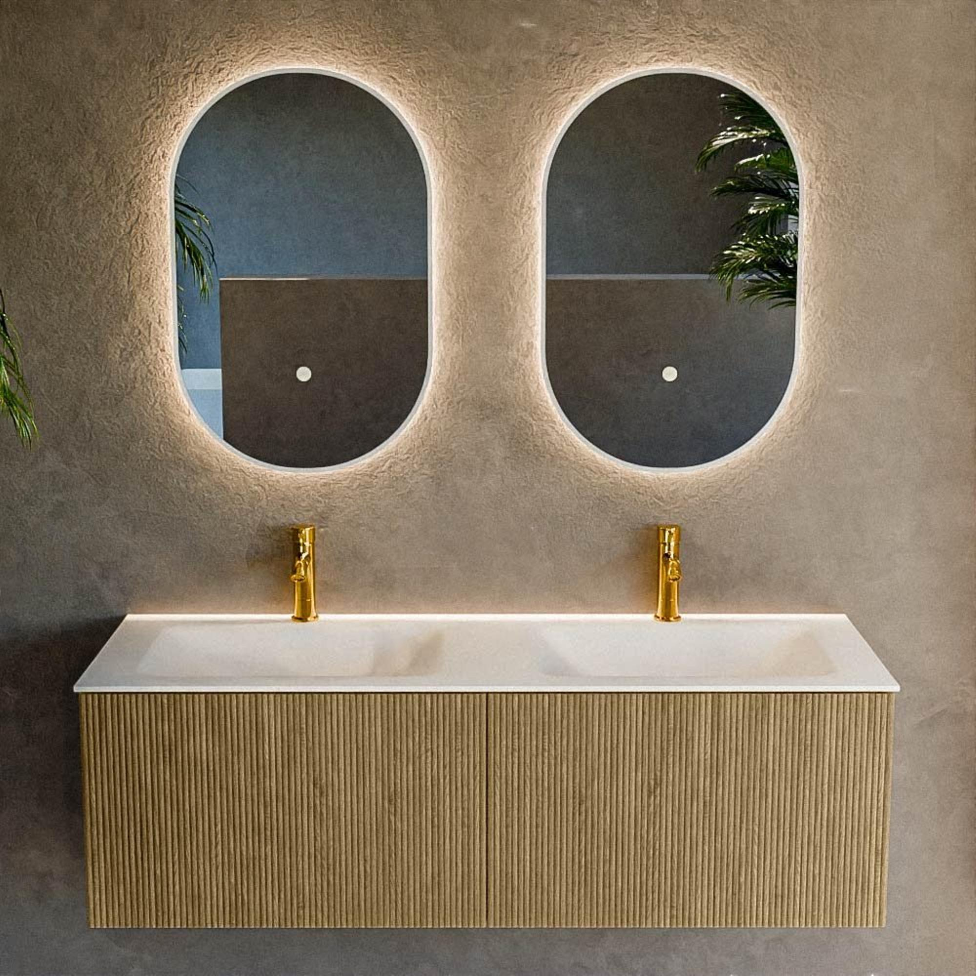 Mondiaz KURVE Badkamermeubelset - 130x46x40cm - 2 lade - wastafel solid surface - dubbel - 2 kraangaten - Dusk