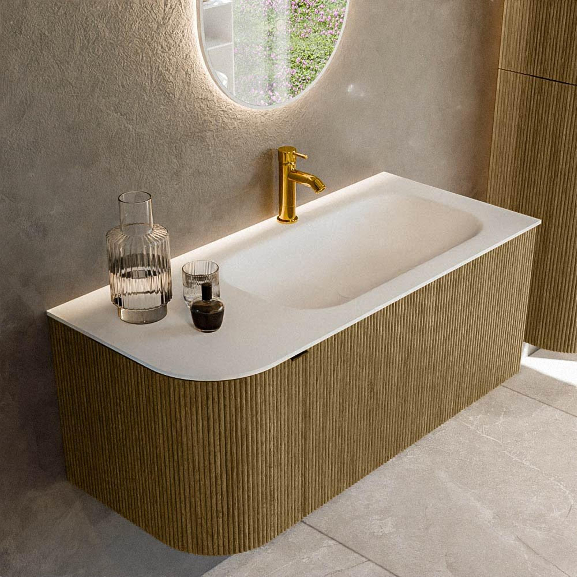Mondiaz KURVE Badkamermeubelset - 105x46x40cm - 1 lade - 1 deur - wastafel solid surface - rechts - 1 kraangat - Dusk