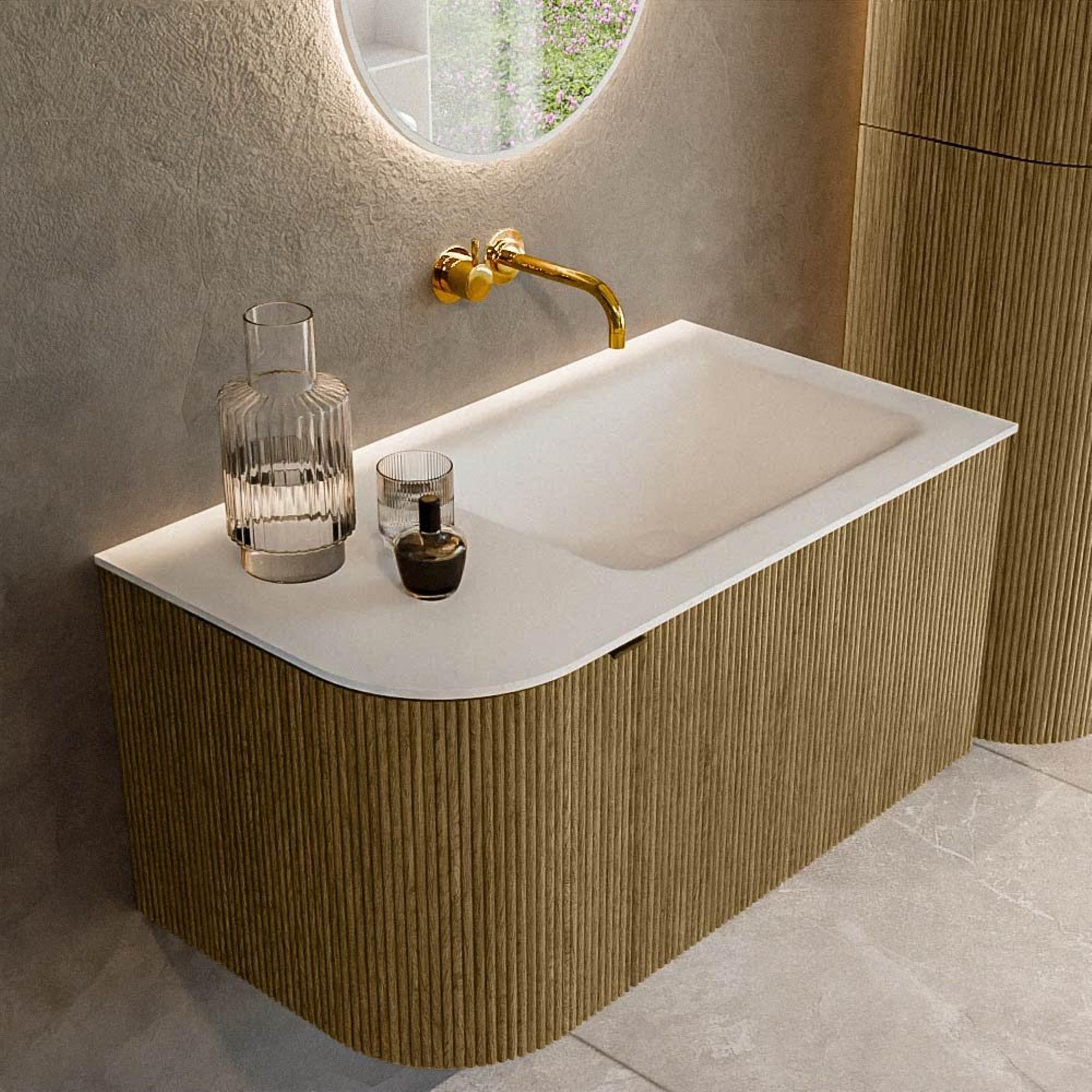 Mondiaz KURVE Badkamermeubelset - 85x46x40cm - 1 lade - 1 deur - wastafel solid surface - rechts - zonder kraangat - Dusk