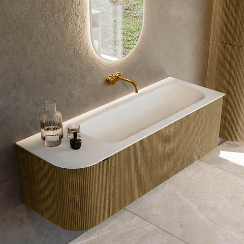 Mondiaz KURVE Badkamermeubelset - 135x46x40cm - 1 lade - 1 deur - wastafel solid surface - rechts - zonder kraangat - Dusk