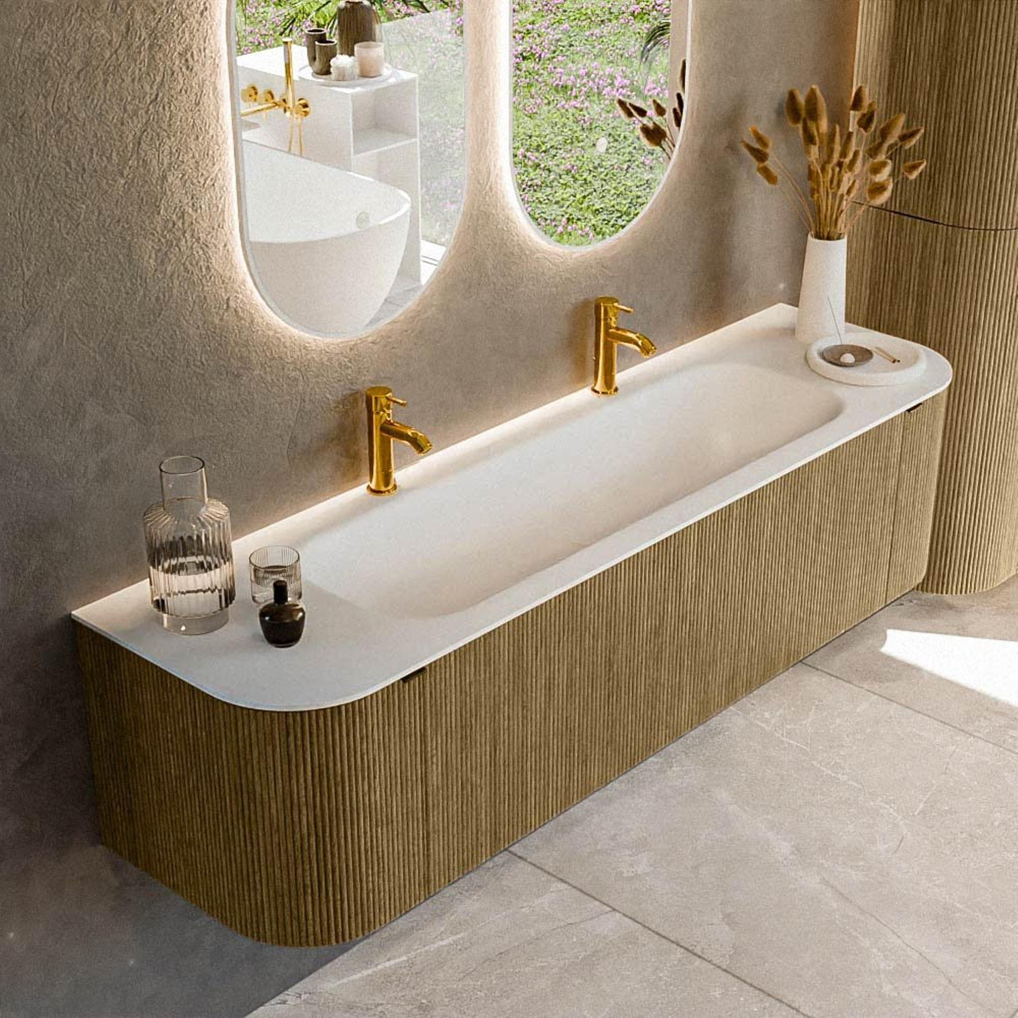 Elegant De elegantie van deze badkamermeubelset wordt direct onderstreept door zijn slanke ontwerp en afwerking. De strakke lijnen en het gebruik van hoogwaardige materialen zorgen voor een verfijnde uitstraling die een gevoel van luxe uitstraalt. Het is een ideale toevoeging aan een moderne badkamer, waar zachte tinten en serene vibes gewenst zijn. Dankzij de warme, subtiele kleurtint van de finish, genaamd 'Dusk', creëert het meubel een kalmerende sfeer die je badkamer omtovert tot een oase van rust en elegantie. De elegante wastafel van solid surface is niet alleen visueel aantrekkelijk maar biedt ook duurzaamheid en gemak. Het meubel straalt een tijdloze schoonheid uit, waardoor het naadloos past bij uiteenlopende badkamerstijlen. De manier waarop het meubel in je badkamerruimte wordt geïntegreerd, getuigt van een zorgvuldig en stijlvol ontwerp dat niet alleen hedendaagse trends volgt, maar ook over vele jaren nog steeds modern oogt.