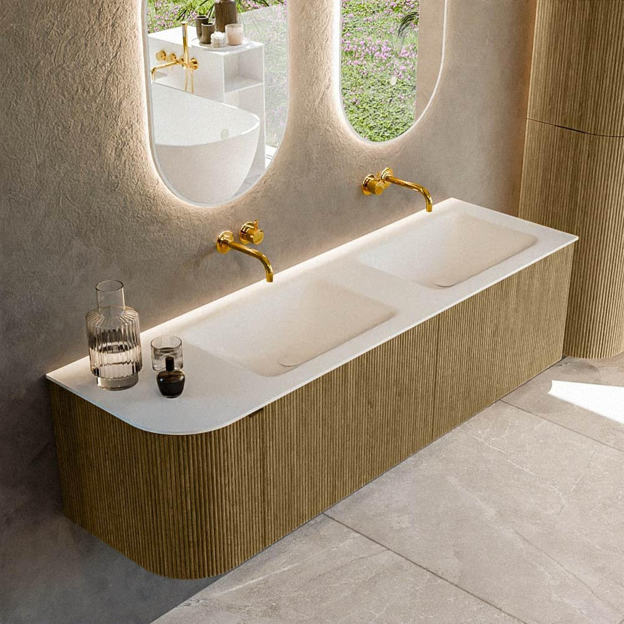 Mondiaz KURVE Badkamermeubelset - 155x46x40cm - 2 lade - 1 deur - wastafel solid surface - dubbel / rechts - zonder kraangat - Dusk
