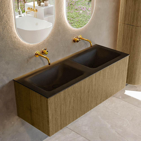 Mondiaz KURVE Badkamermeubelset - 120x46x40cm - 1 lade - wastafel solid surface - dubbel - zonder kraangat - Dusk