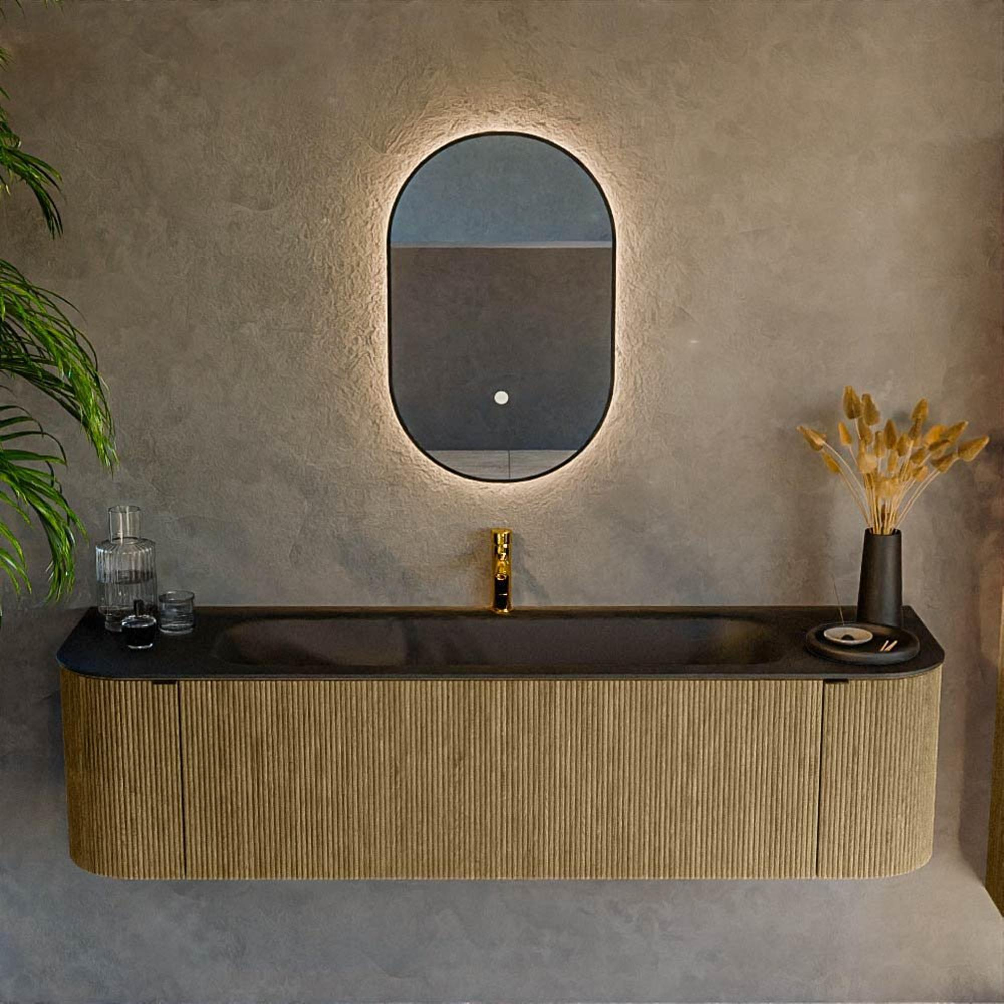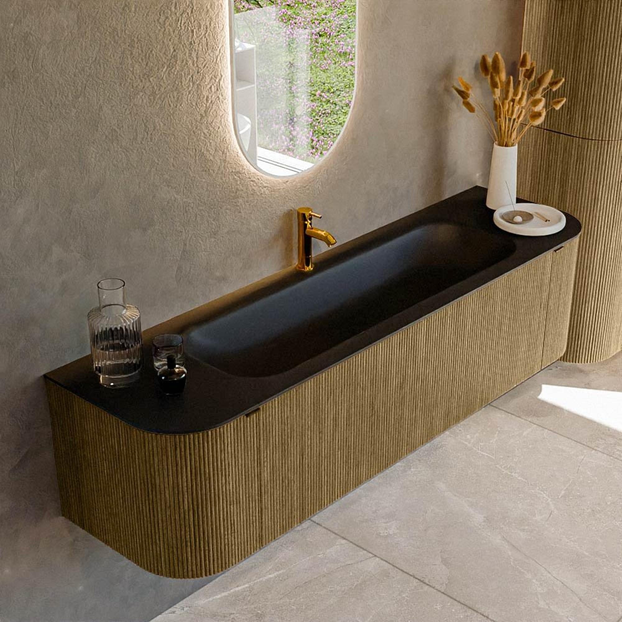 Mondiaz KURVE Badkamermeubelset - 170x46x40cm - 1 lade - 2 deuren - wastafel solid surface - midden - 1 kraangat - Dusk