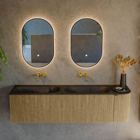 Elegant Het elegante karakter van dit badkamermeubel uit zich in elk detail van het ontwerp. De gladde, naadloze afwerking straalt verfijning uit en creëert een rustgevende ambiance die je dagelijks begroet met een gevoel van luxe. Het meubel is ontworpen om perfect aan te sluiten bij een breed scala aan interieurstijlen, van minimalistisch tot klassiek chic, zonder daarbij zijn eigen unieke karakter te verliezen. De kleur Dusk biedt een eigentijdse tint die net dat beetje warmte toevoegt aan de ruimte, waardoor het een uitnodigende en aangename sfeer creëert. Het geheel heeft een symmetrische opzet die de rust en balans in je badkamer onderstreept. Dankzij de hoogwaardige materialen is het badkamermeubel niet alleen een lust voor het oog, maar ook duurzaam genoeg om de tand des tijds te doorstaan. Met subtiele details en stijlvolle accenten zorgt het ervoor dat je badkamer nooit saai of alledaags aanvoelt. De ontwerpers hebben gekozen voor een minimalistische benadering, met een focus op heldere, strakke lijnen en het vermijden van overbodige ornamenten om zo een serieus en toch stijlvol meubelstuk te creëren. Het is de perfecte keuze voor wie op zoek is naar een combinatie van verfijning en gebruiksgemak, waarbij elk bezoek aan de badkamer aanvoelt als een persoonlijke retraite.